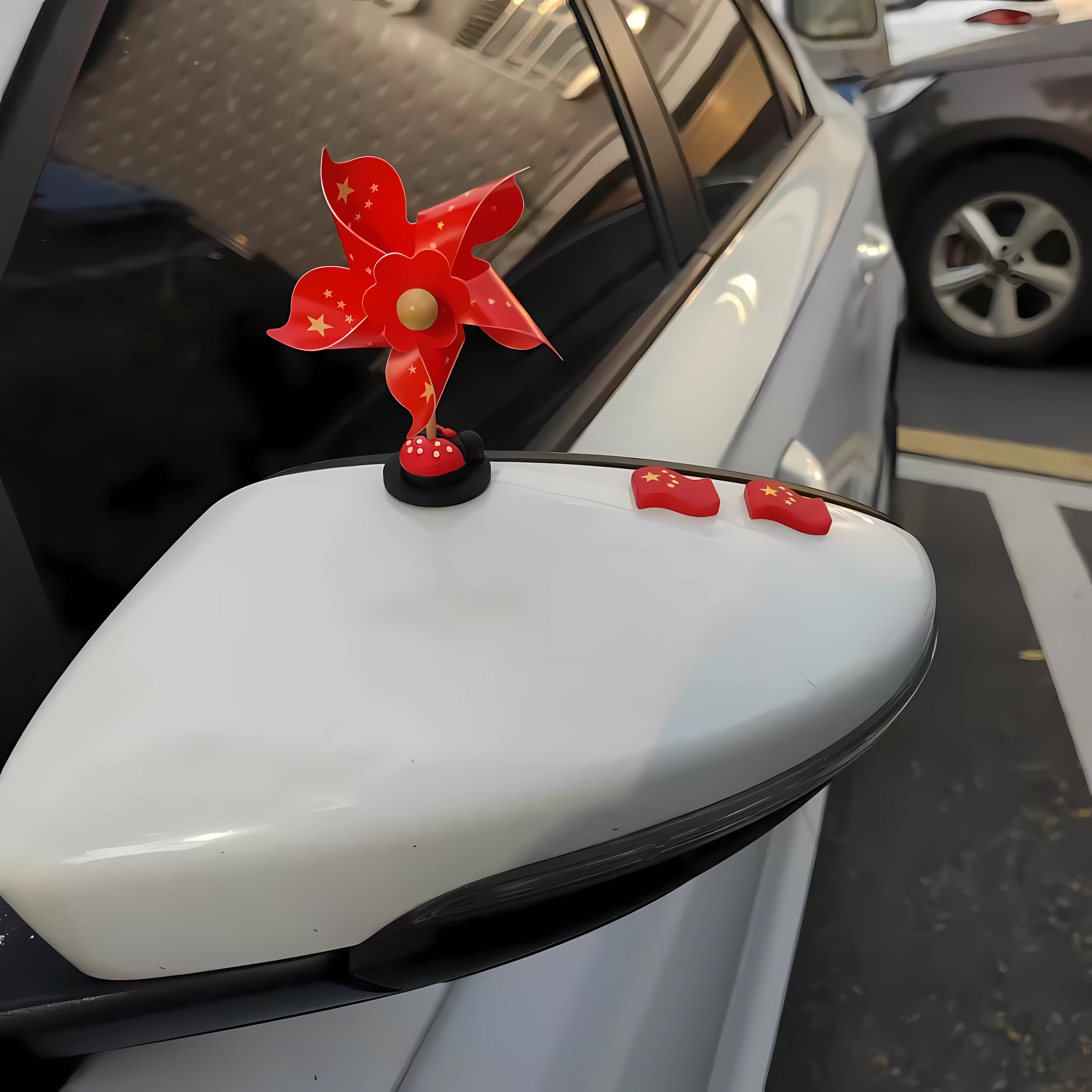 国庆节热卖摆件爱国红旗车载摆件旋转国旗风车汽车中控台装饰品