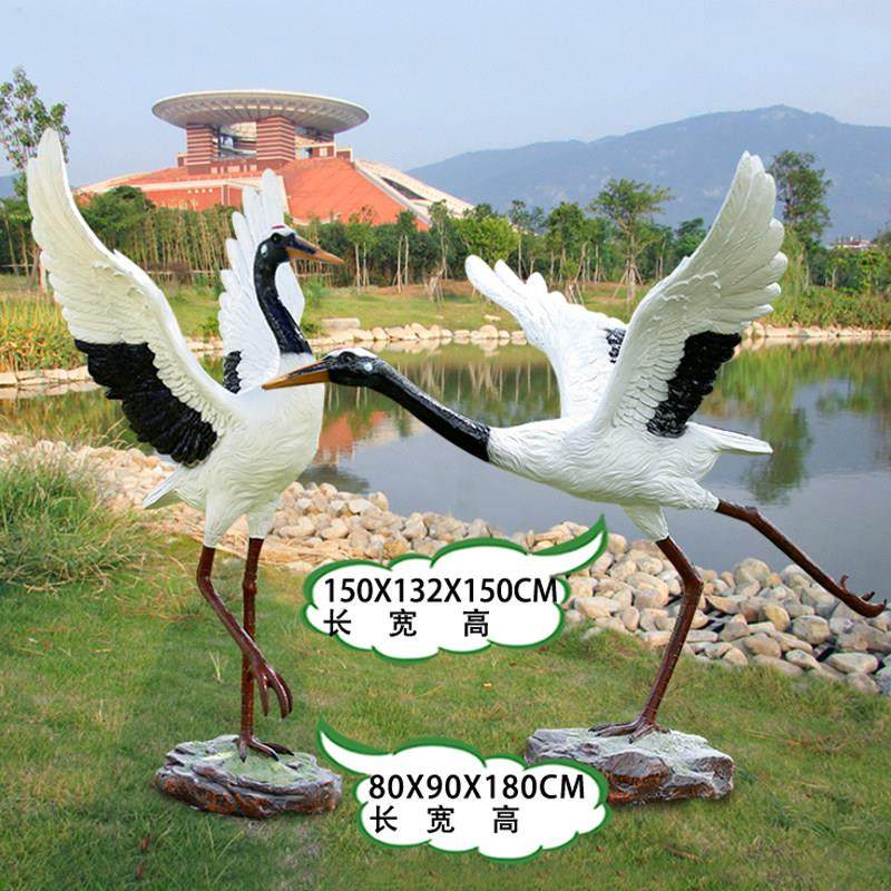 仿真大丹顶鹤摆件白鹤雕塑喷水飞鹤落地仙鹤模型户外假山庭院水池