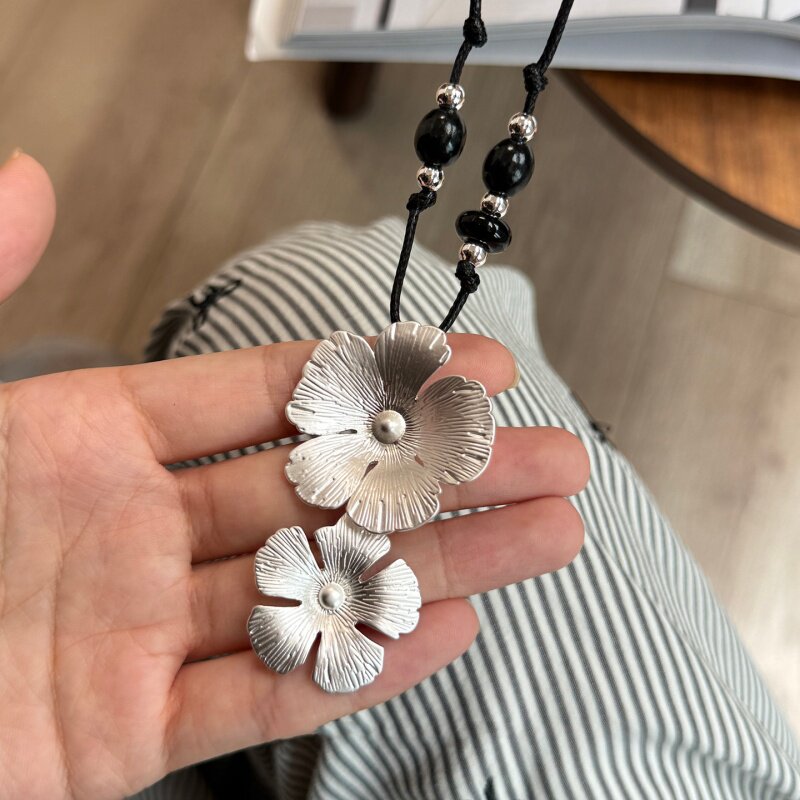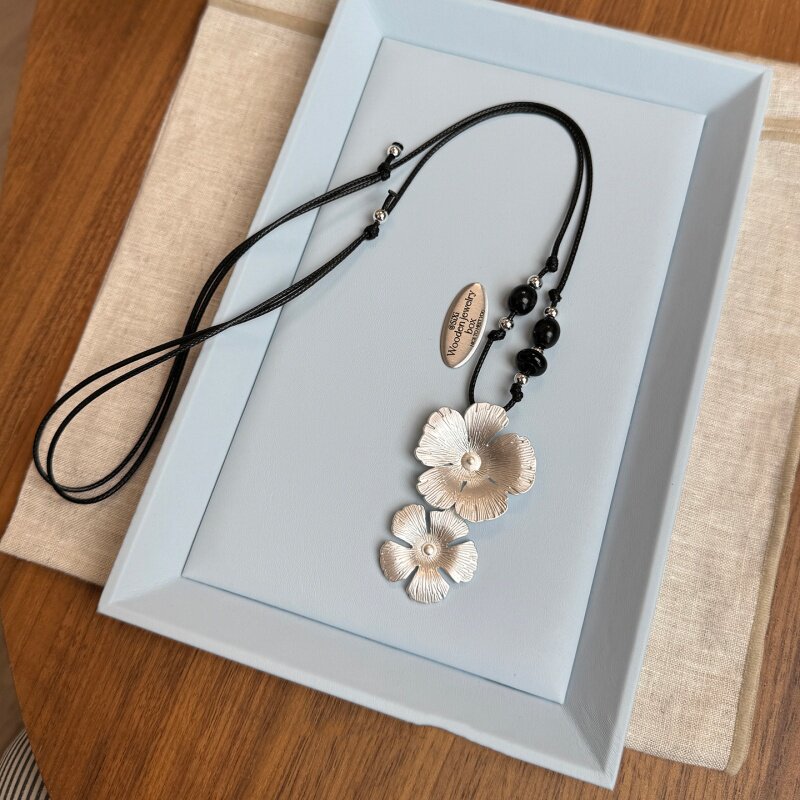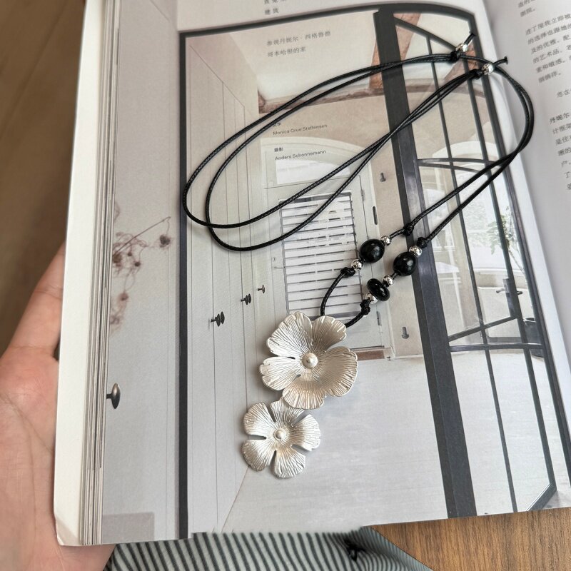 秋冬黑色编绳拉丝繁花毛衣项链女2025新款爆款轻奢高级感气质配饰