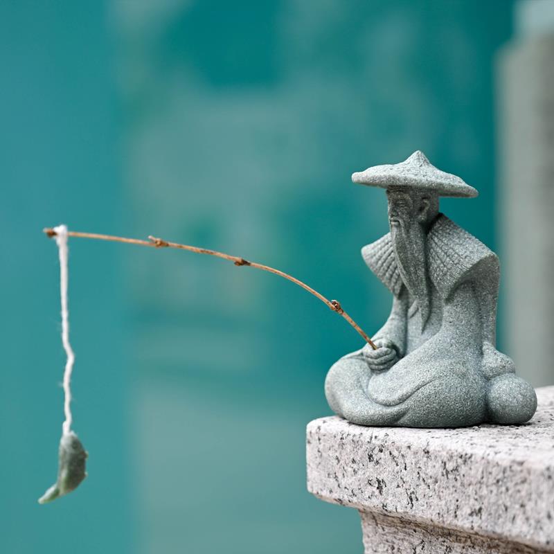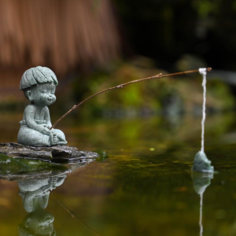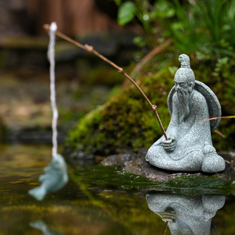大号姜太公钓鱼花园流水装饰摆件假山鱼缸钓渔翁树脂工艺品造景