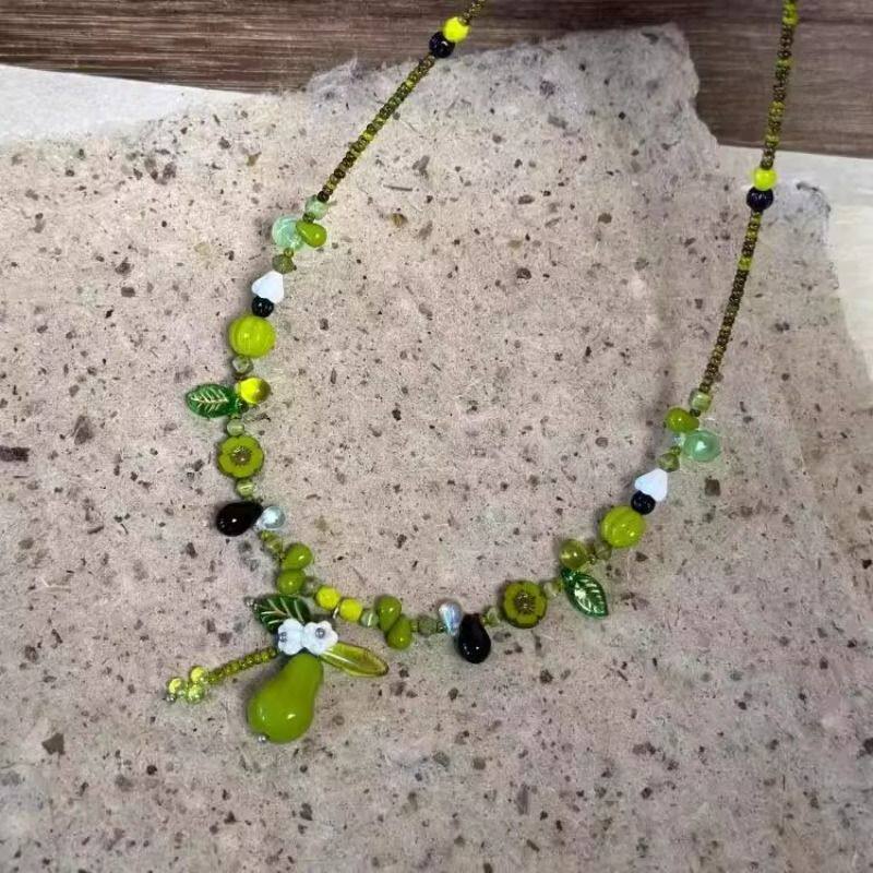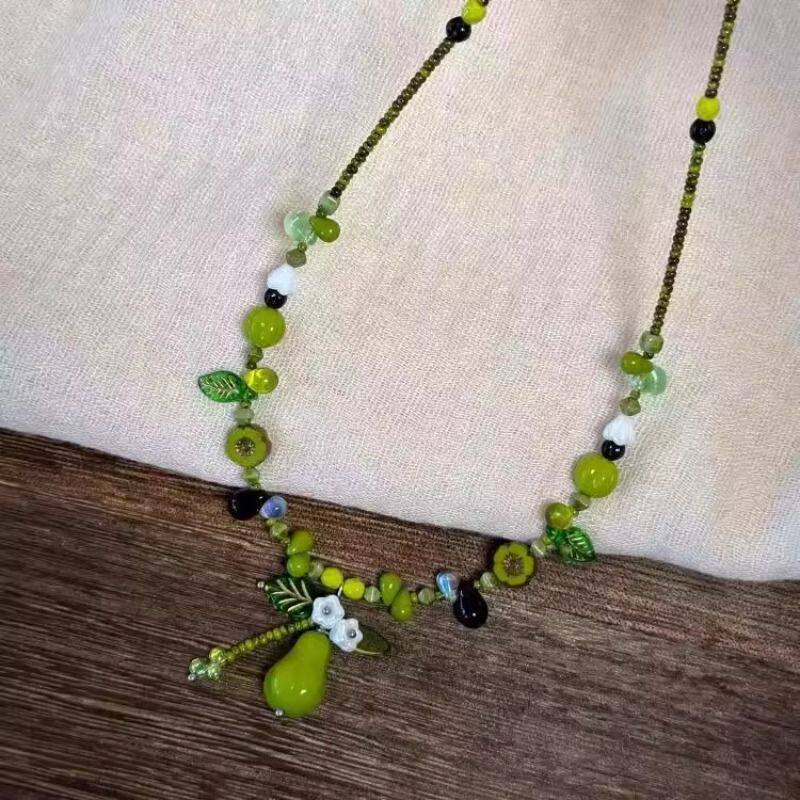 【仲夏森林】绿色串珠小青梨项链植物系小清新锁骨链复古串珠手链