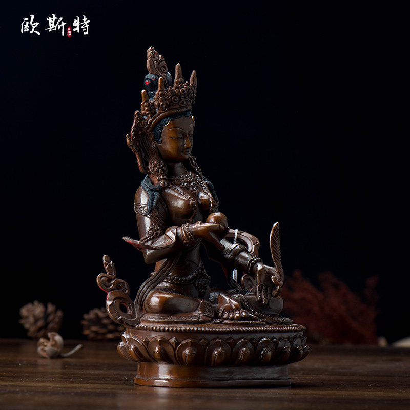 欧斯特 尼泊尔手工紫铜 7寸地藏菩萨 地藏王菩萨家居客厅中式摆件