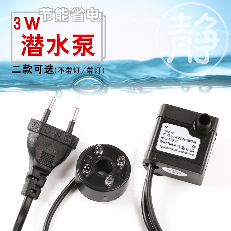 鱼缸抽水泵喷泉雾化器带彩灯喷雾水景鱼池假山流水摆件加湿器配件
