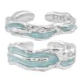 PTC绿色渐变宝石宽面肌理戒指小众设计925纯银宽面开口可调节男女