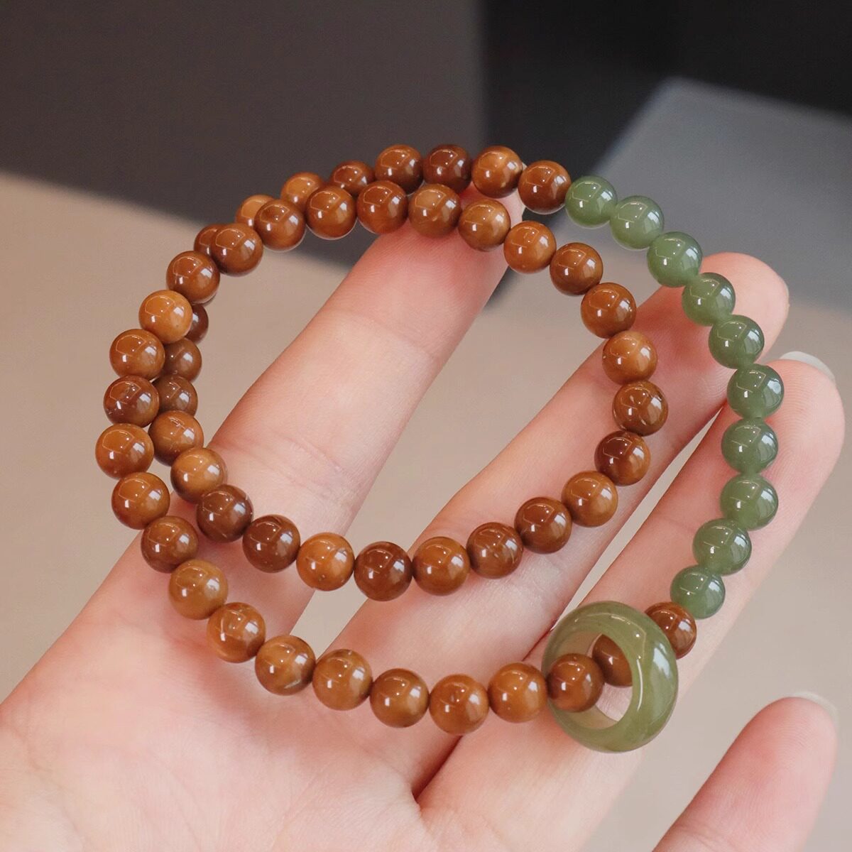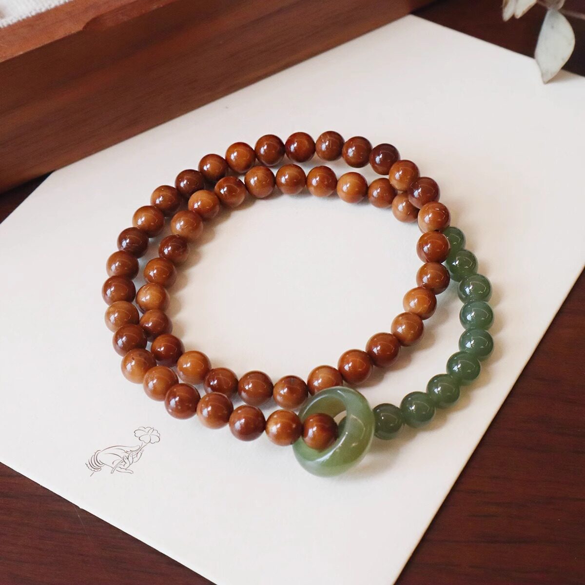 原创天然库克和田玉手串跑环手持念珠文玩双层手链男女生日礼物女