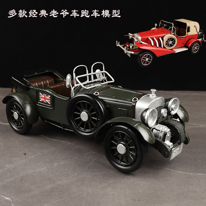 复古老爷车模型摆件铁艺跑车工艺品摄影道具橱窗酒柜老式汽车装饰