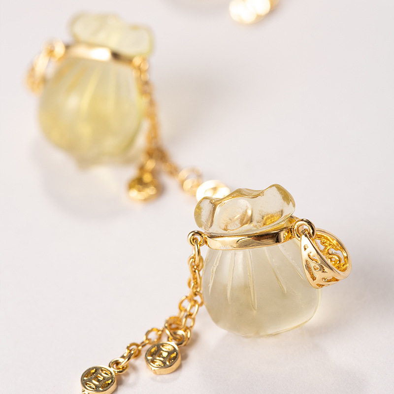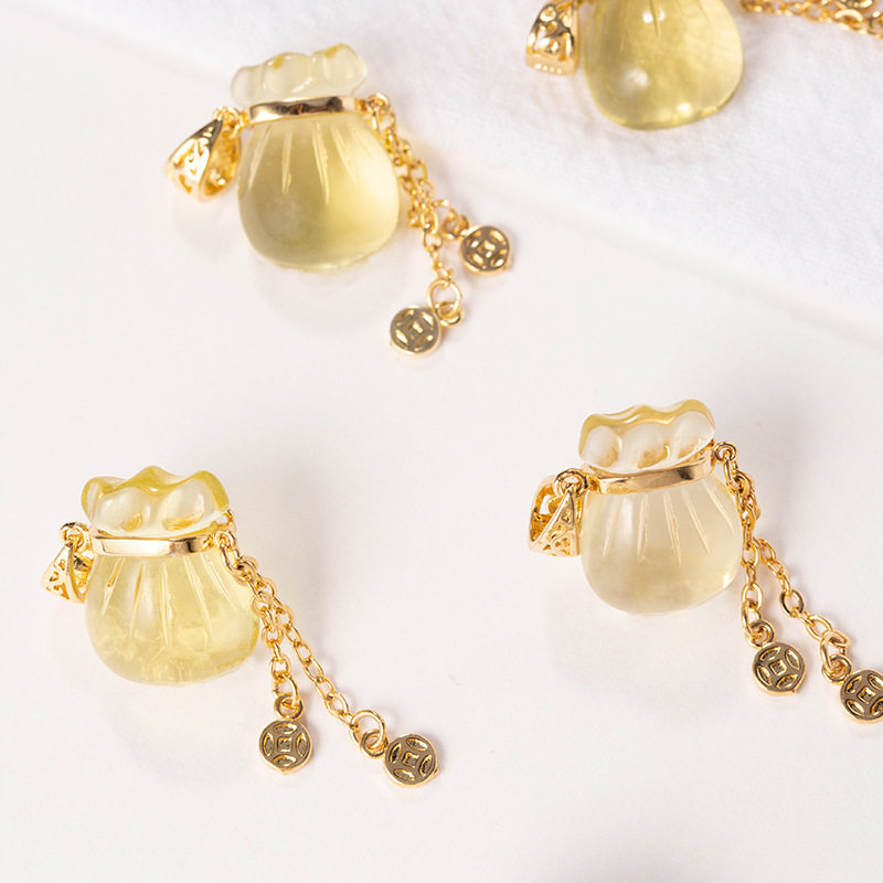 天然黄水晶钱袋提溜柠檬晶手链吊坠福袋单坠项链饰品配件材料配饰