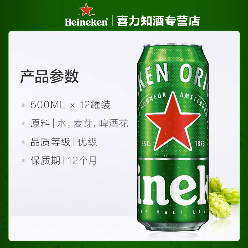 喜力【Heineken】经典拉罐啤酒500ml*12听 整箱官方正品
