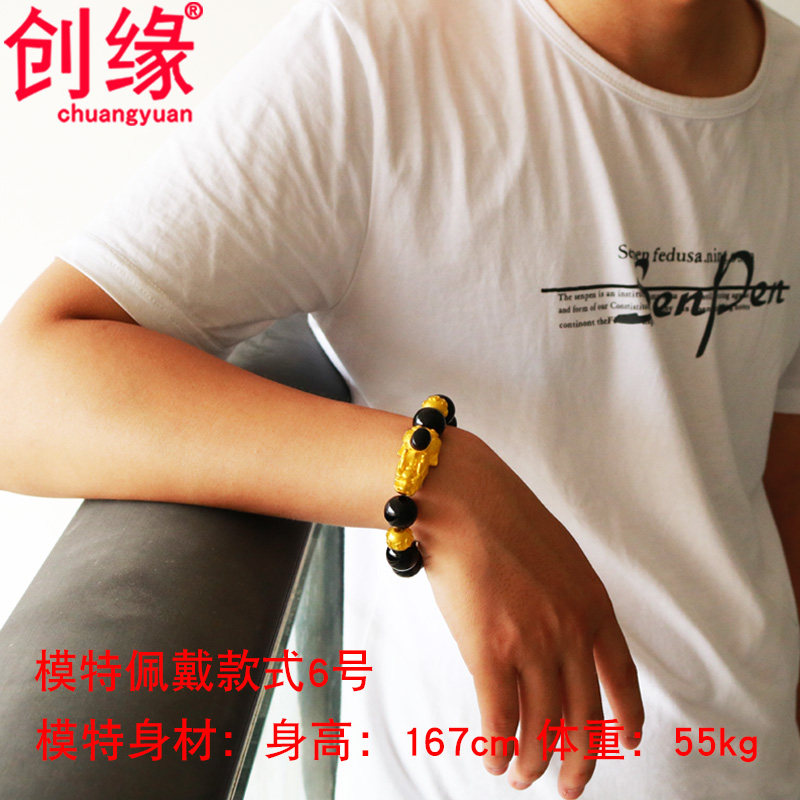 镀黄金貔貅手链男镀沙金情侣款貔貅手串女人工半宝石手链妈妈