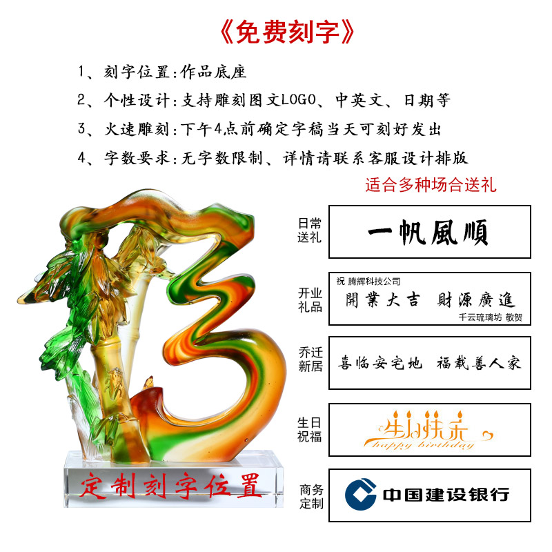 祝福摆件艺术琉璃工艺品定制礼物送给长辈礼品办公室桌面高档