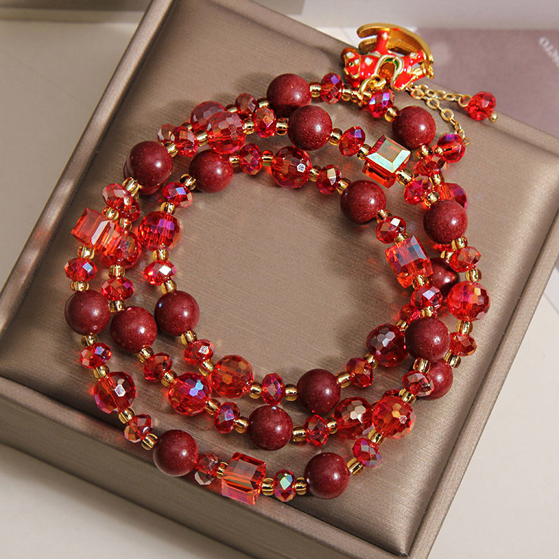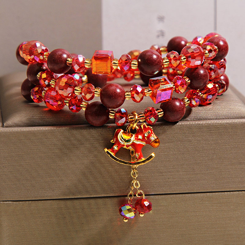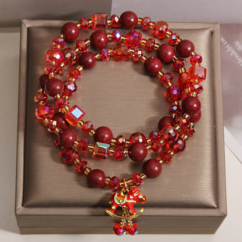 2026马年本命年红色水晶手链多层合香珠手串马上有钱招财转运手饰