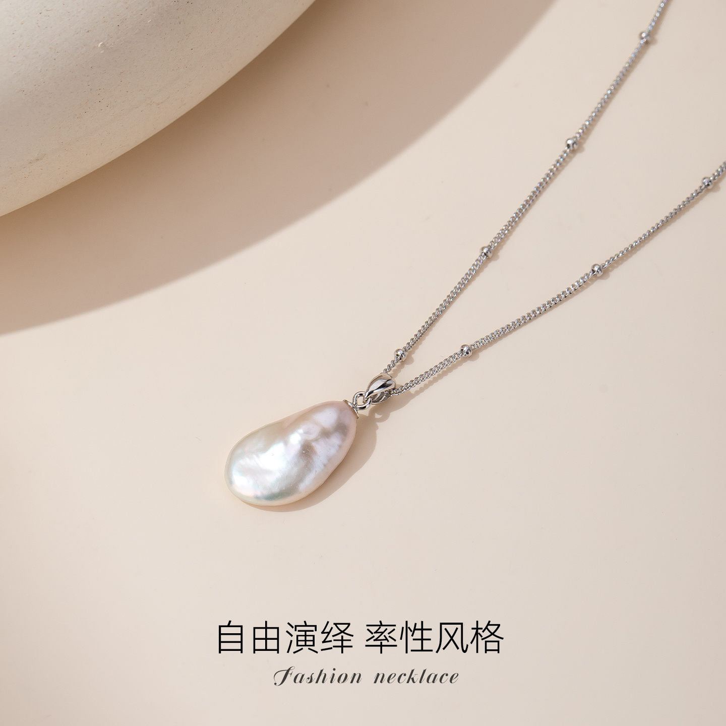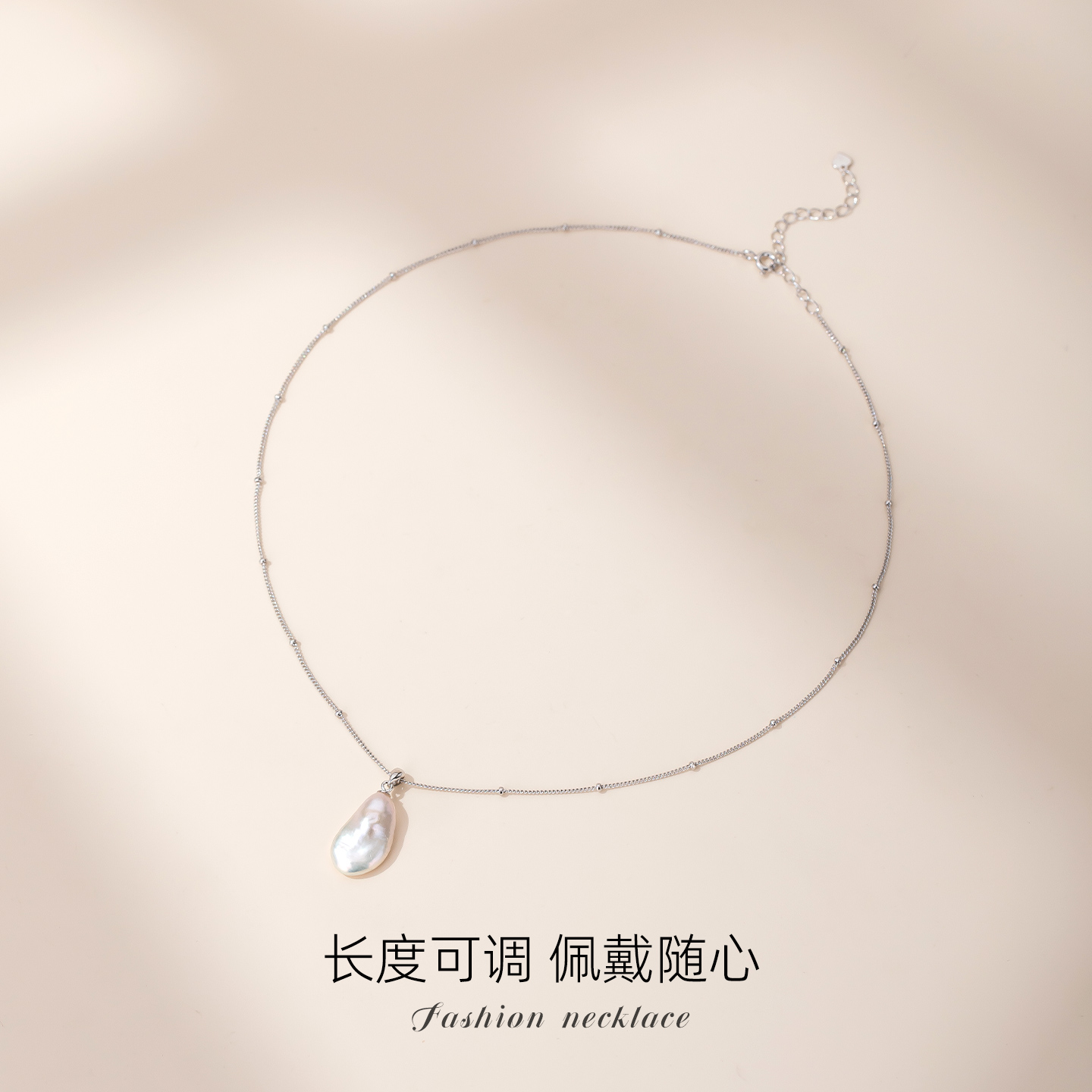 巴洛克异形珍珠银项链女款高级感轻奢小众配饰毛衣链吊坠锁骨链