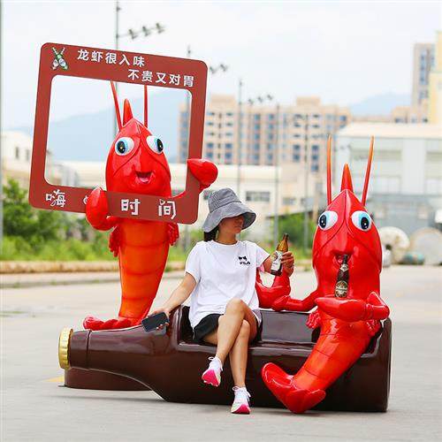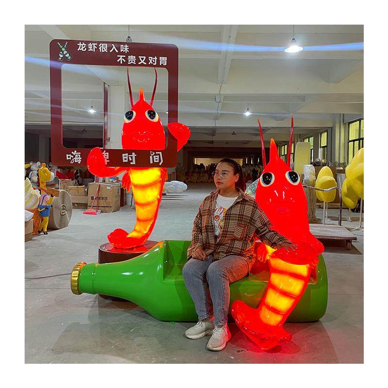 户外仿真卡通发光小龙虾座椅玻璃钢雕塑海鲜馆餐厅拍照落地大摆件