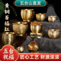 天然黄水晶元宝沙金色小元宝黄铜聚宝盆聚招财琉璃迷你百福缸摆件