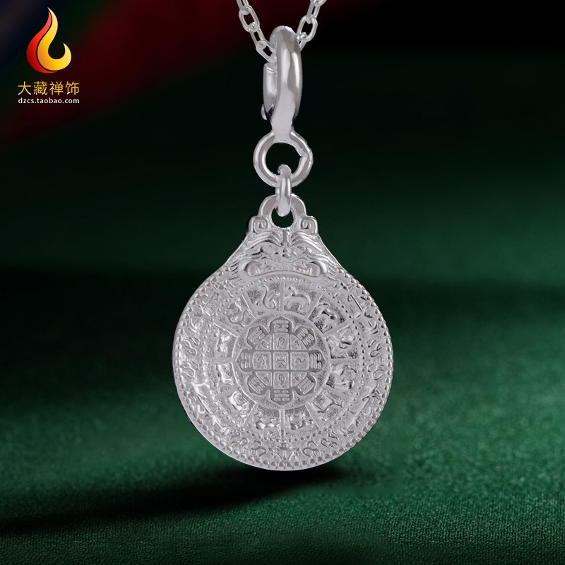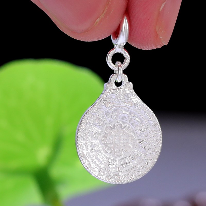 S925纯银九宫八卦牌吊坠 西藏式民族风手链挂件配饰 精致情侣项链
