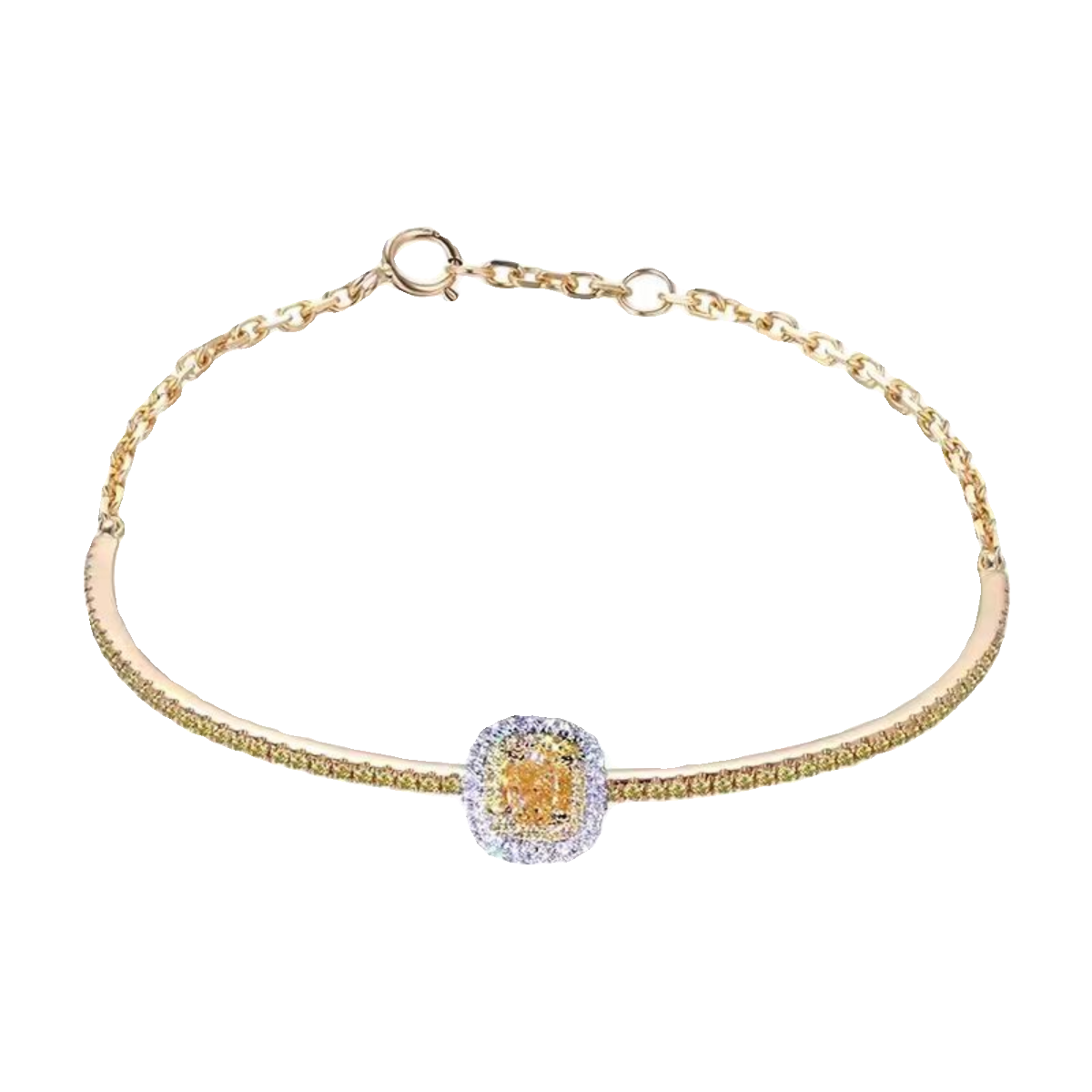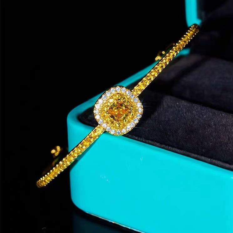 纯18K黄金镶嵌进口D色莫桑石公主肥方黄钻手链轻奢时尚简约设计感