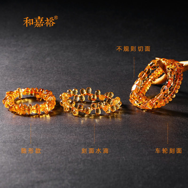 巴西金橘黄水晶手链大尺寸时尚饰品单圈随形钻石刻面手串男女款