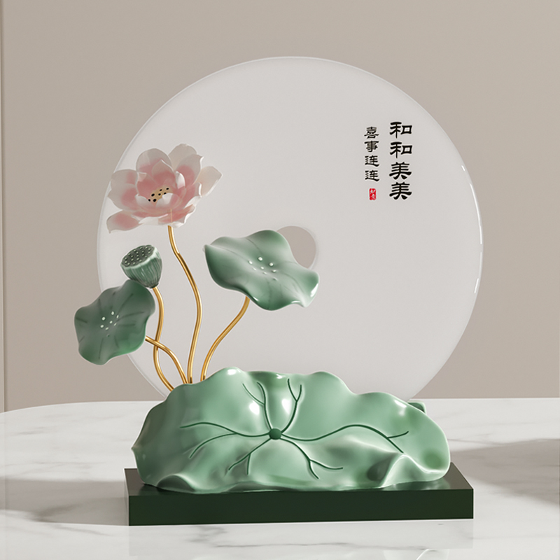 新中式荷花摆件家居软装饰客厅玄关茶室高级感工艺品新家乔迁礼物
