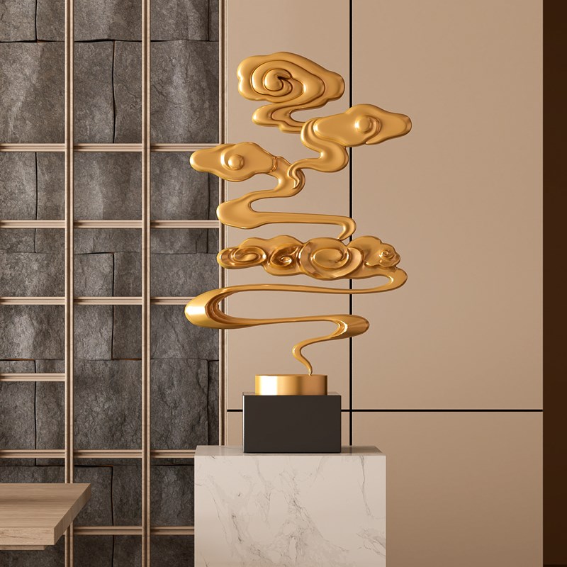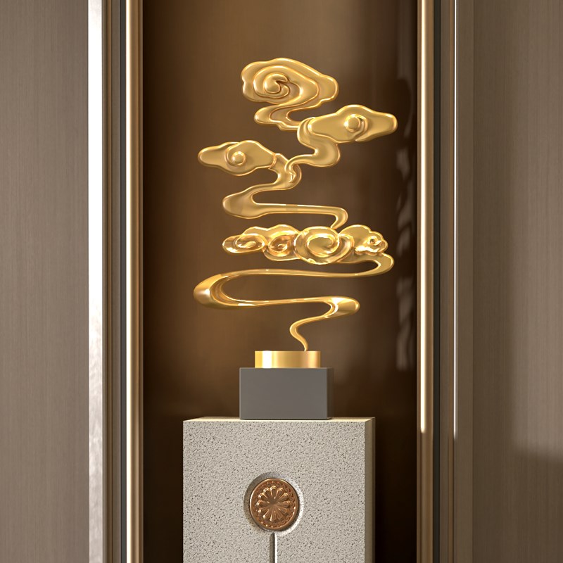 新中式祥云雕塑入户进门玄关落地摆件办公室酒店别墅装饰品客厅柜