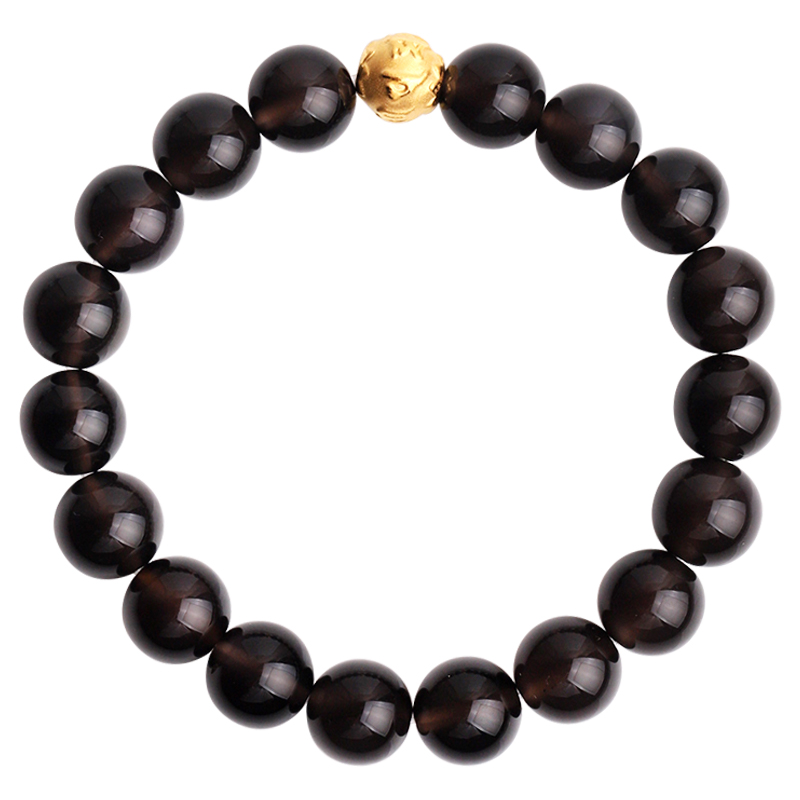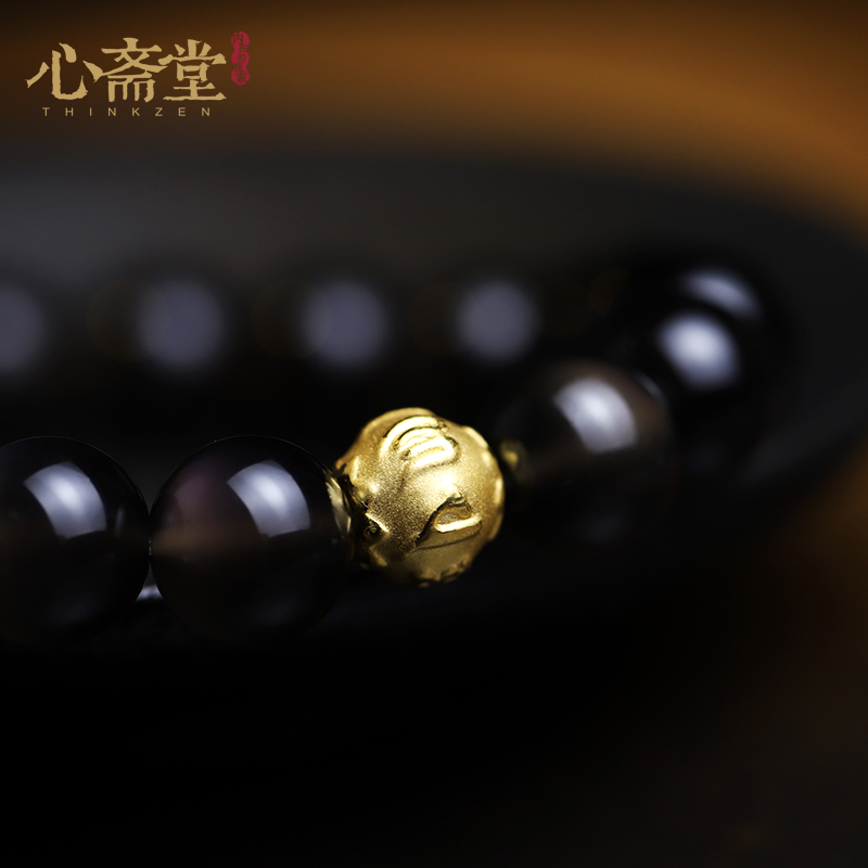 心斋堂【光束】天然冰种黑曜石水晶手链男女足金饰品个性复古手串