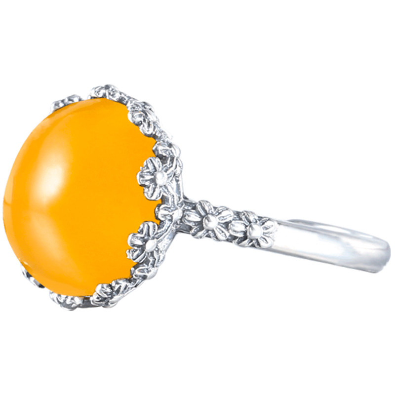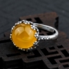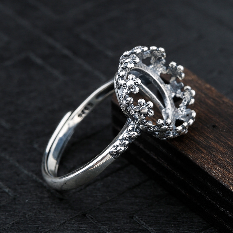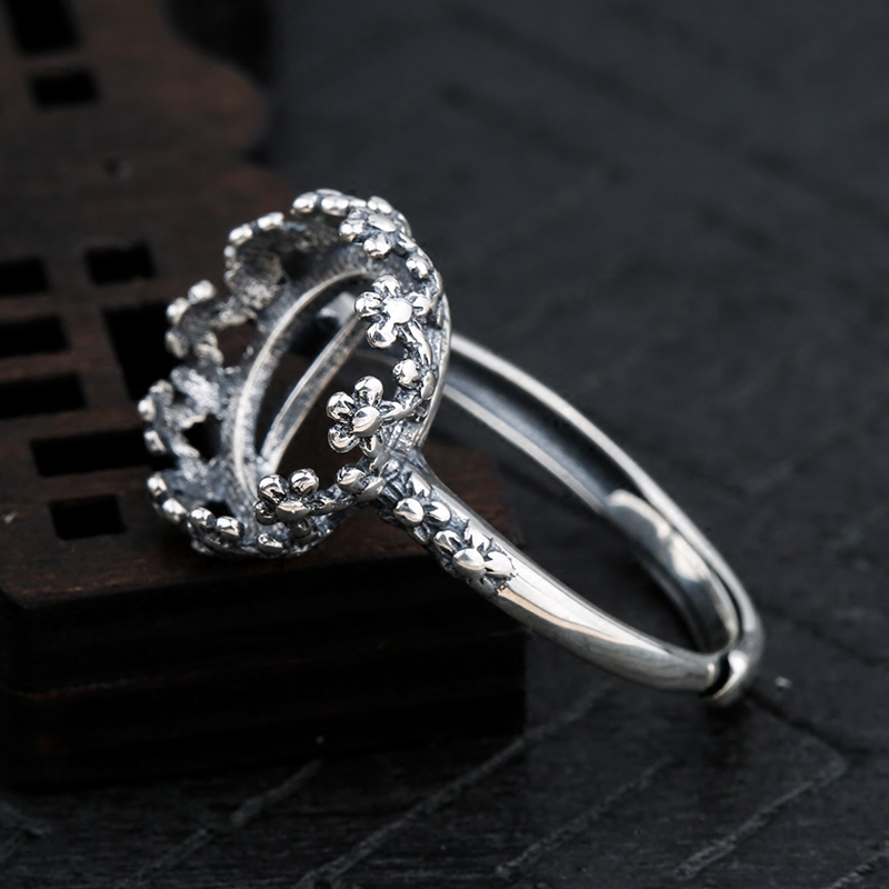 925银复古梅花戒指空托 手工镶嵌琥珀蜜蜡空托圆形银戒托12*12