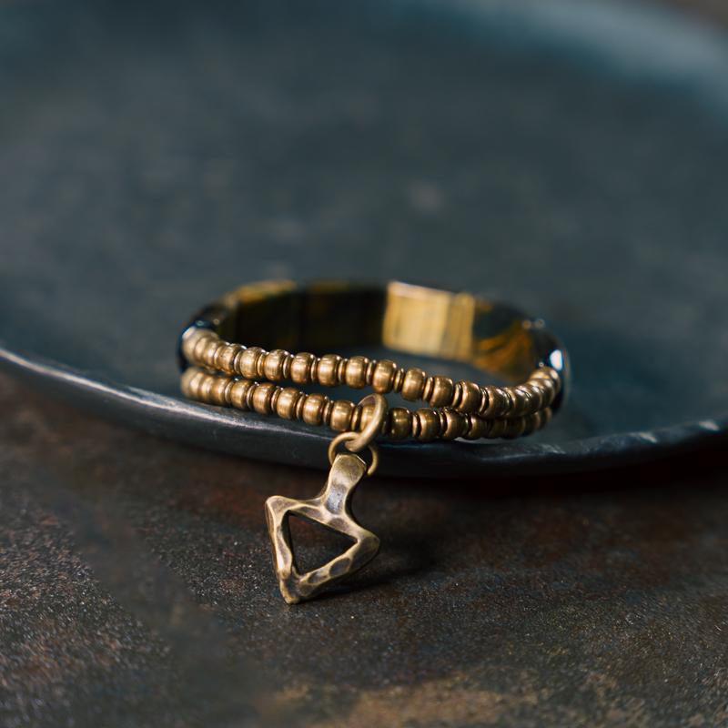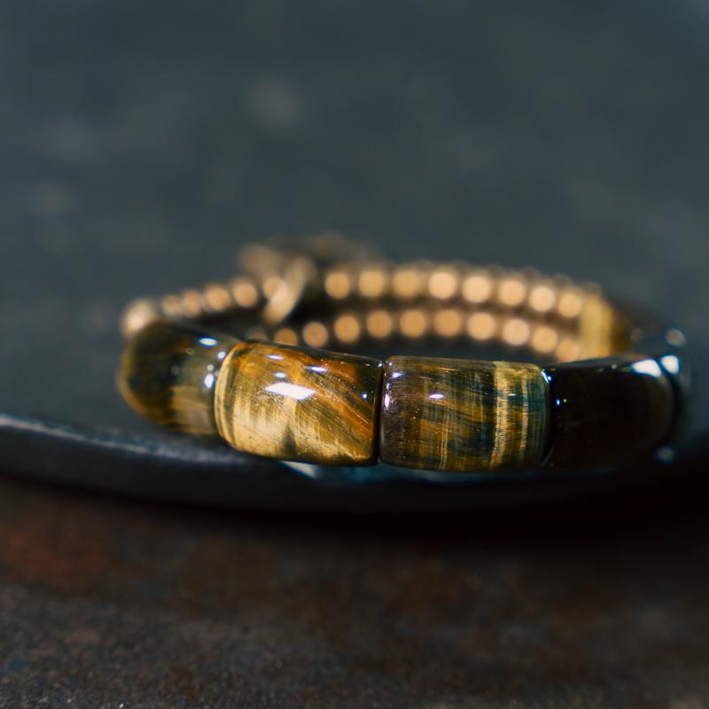 个性潮流黄蓝虎眼石手牌手串男 复古小众设计闪电纹手饰品手链女