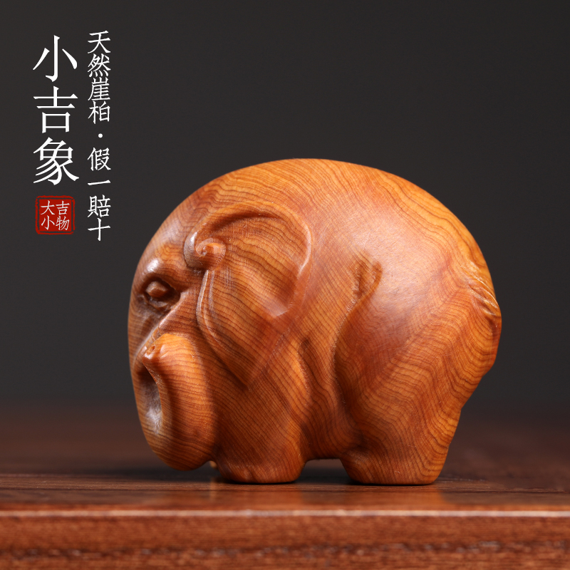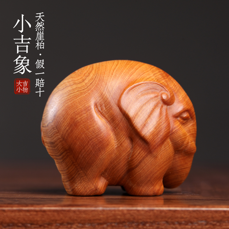 天然太行崖柏木手工木雕刻乖萌可爱小萌象招M财大象文玩手把件摆