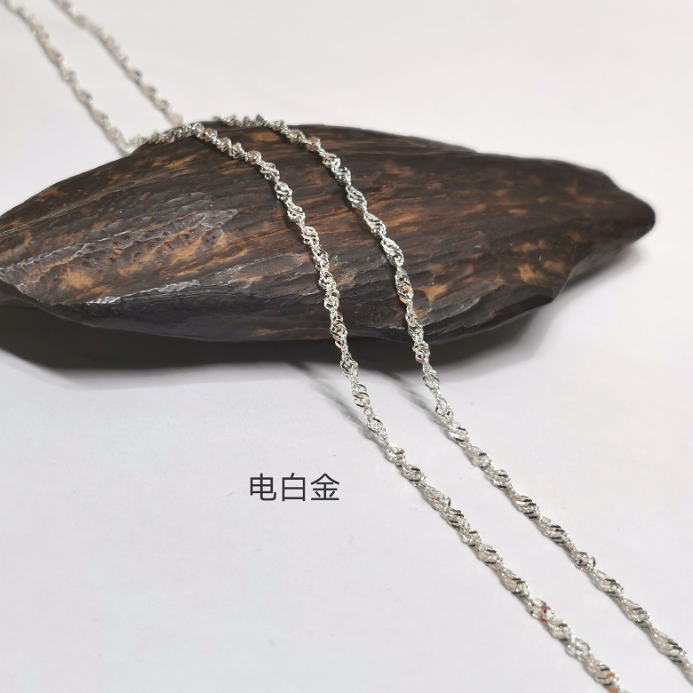 雅庄925纯银项链女款锁骨链简约气质镀白金素银无坠单链2MM水波链