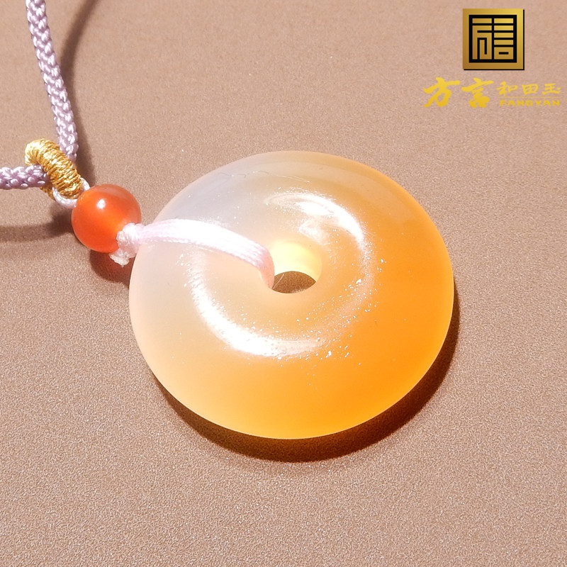 年度回馈方言特色佩戴级高油高冰透黄色玉髓玛瑙平安扣吊坠挂件R9