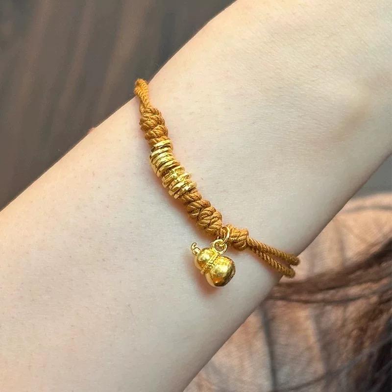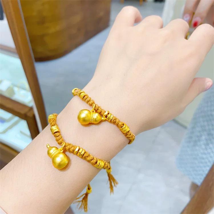葫芦盘缠编制沙金手链手工编制DIY手绳黄金色新中式手串999不掉色