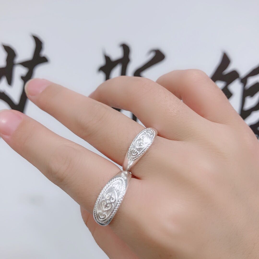 990足银蒙古元素情侣戒指活口纯银对戒艾斯银饰激光刻定制蒙古戒