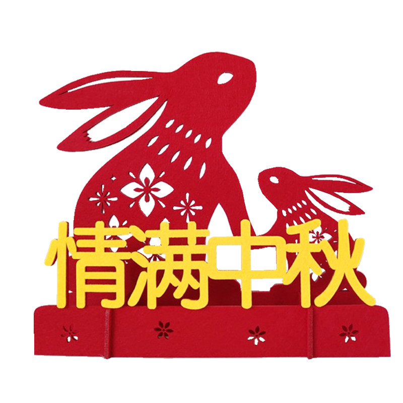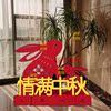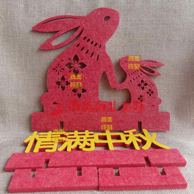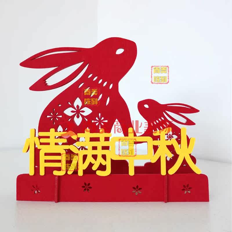 中秋节玉兔嫦娥奔月亮 红色小兔子柜台摆件 商场橱窗桌面装饰美陈