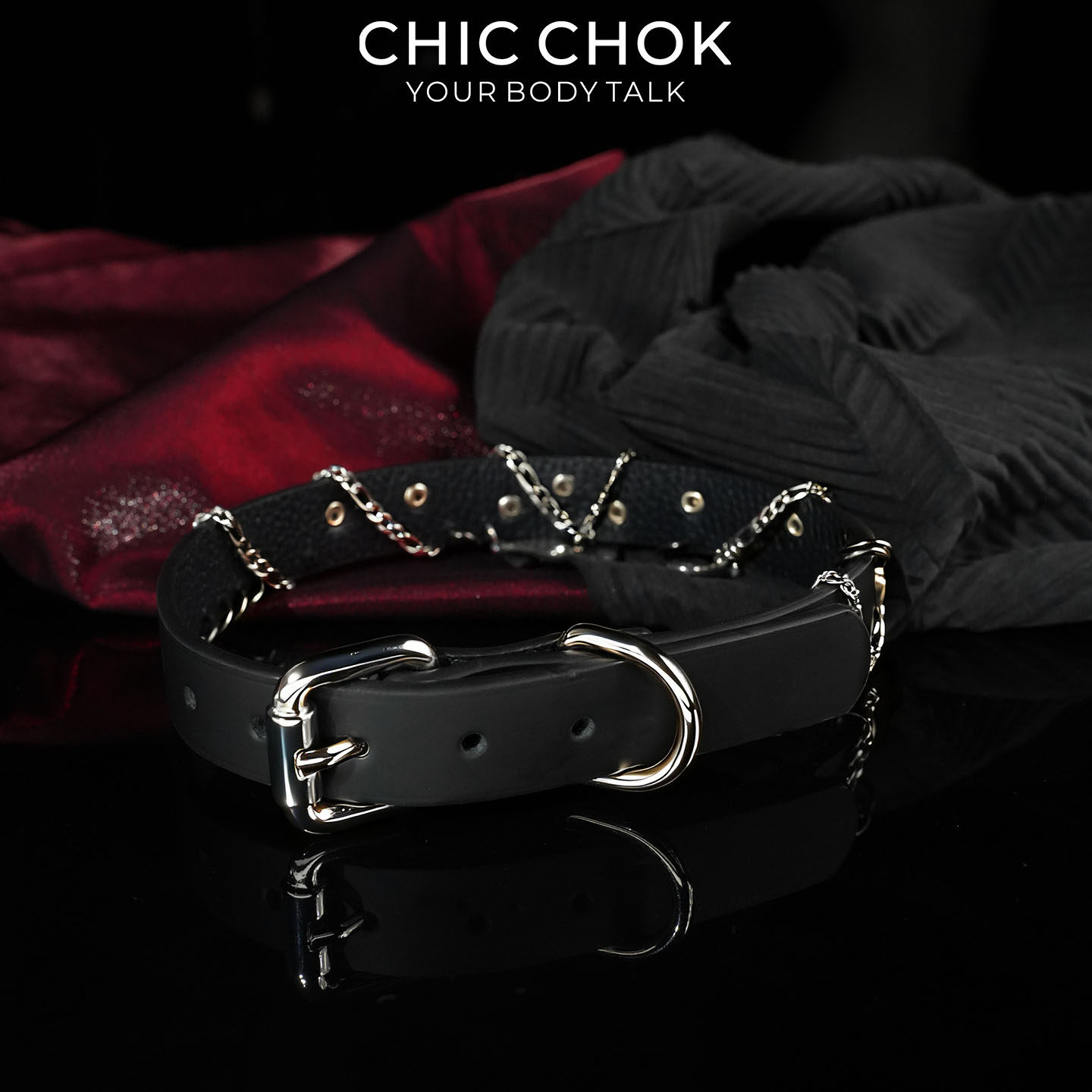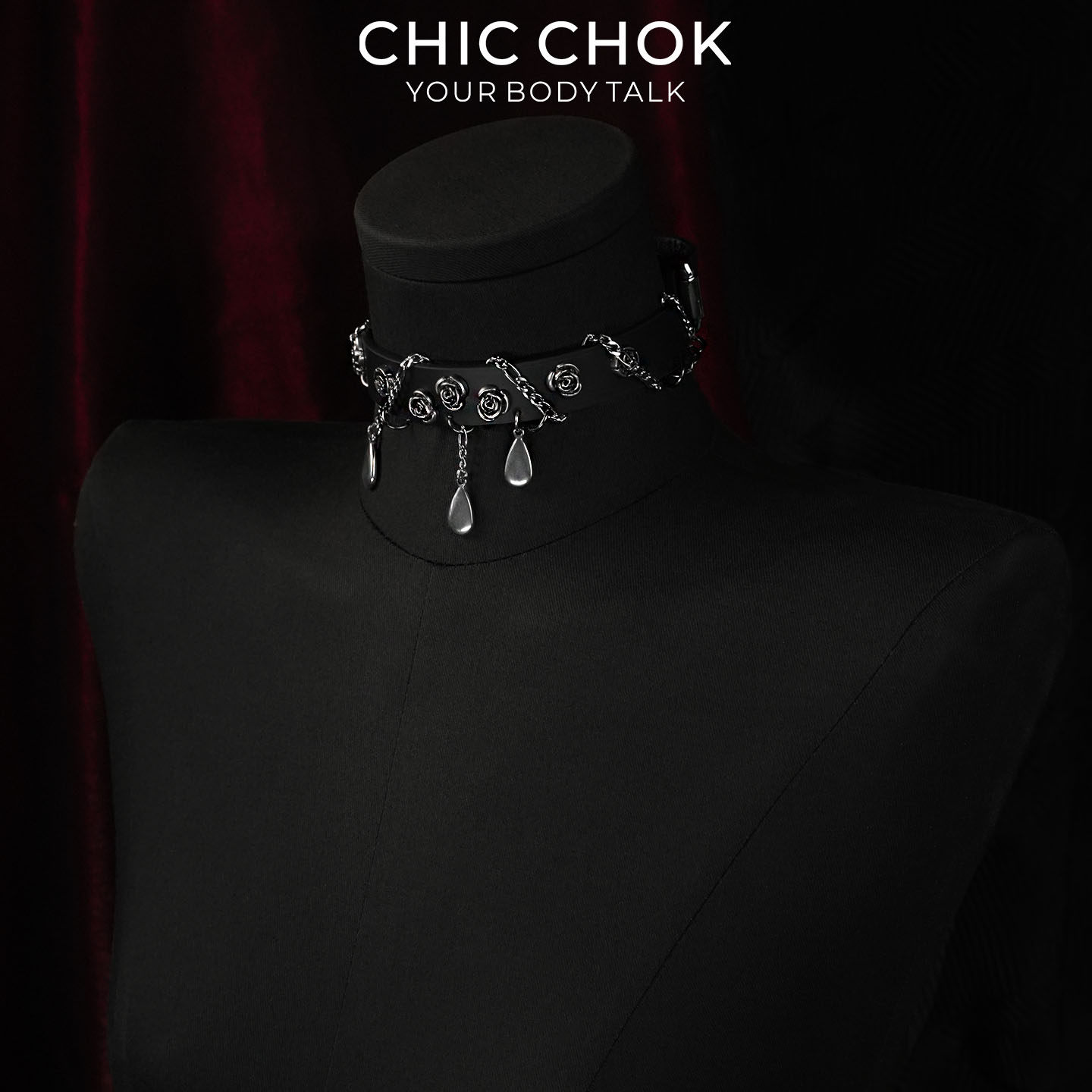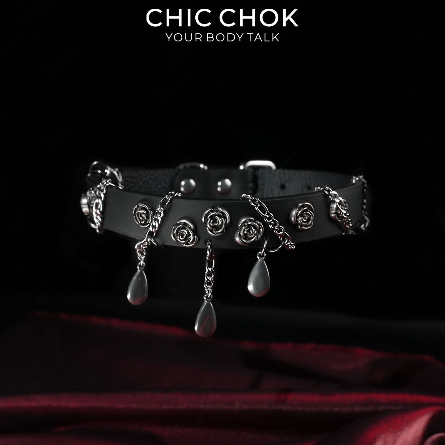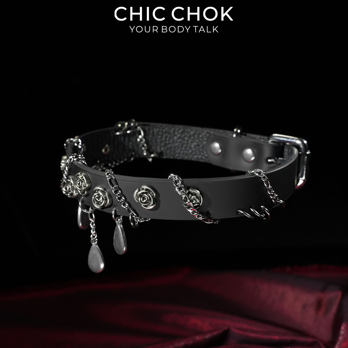 CHICCHOK夜玫坠雨项圈黑色项链雨滴吊坠玫瑰花缠绕链条女颈环原创