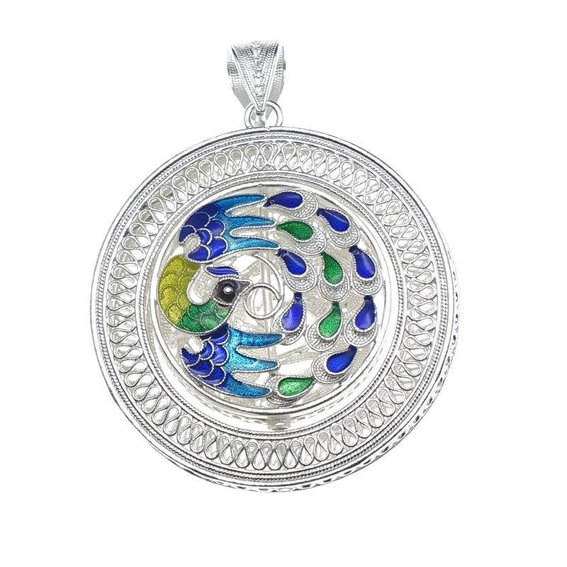 999纯银可转动凤凰吊坠跳动彩素孔雀坠子手工项链毛衣链送礼饰品