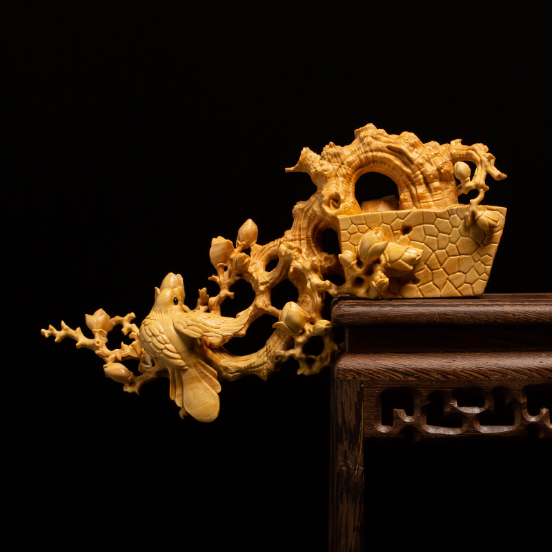 黄杨木雕中式客厅装饰雕刻手工艺品实木创意家居饰品摆件喜上眉梢