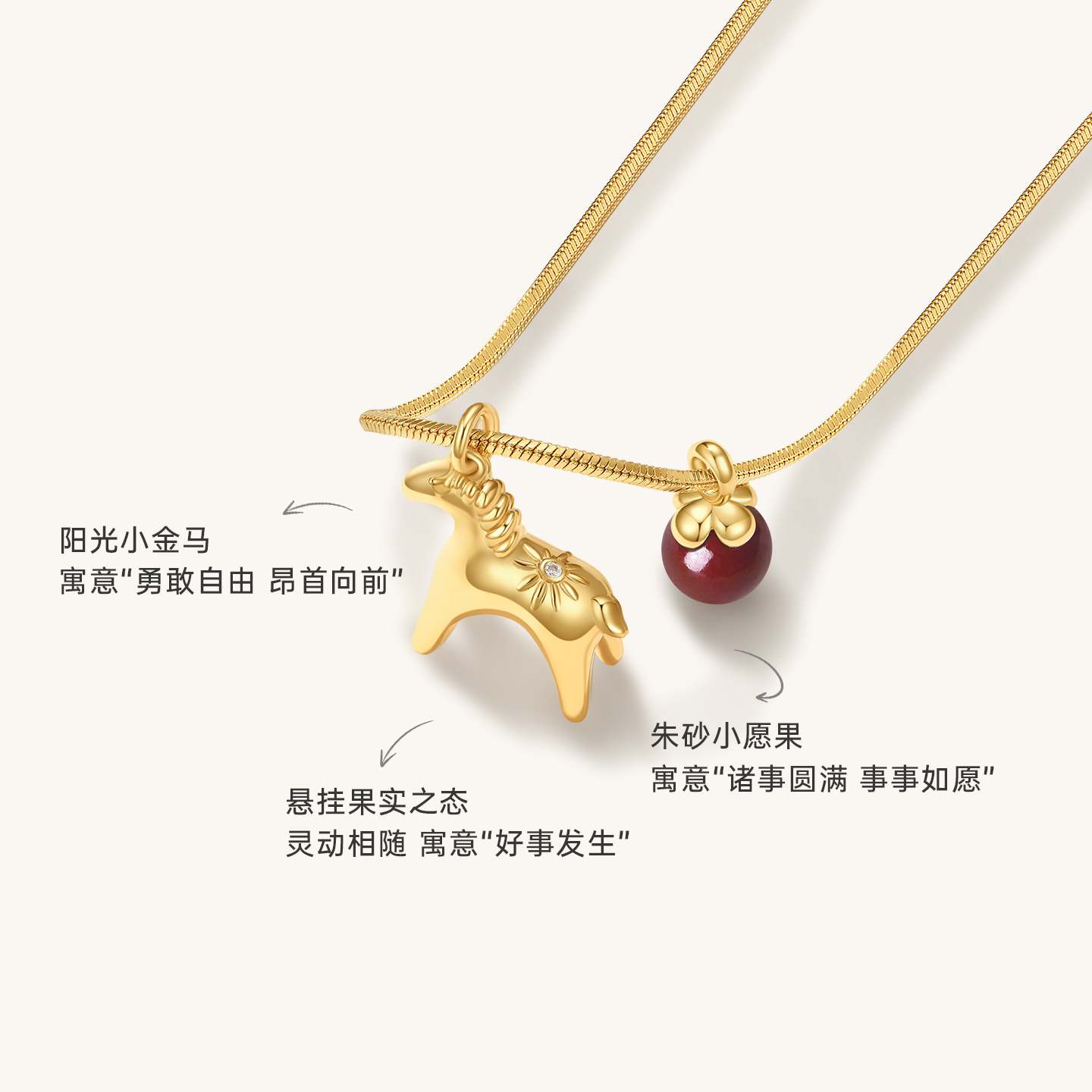 Onchic阳光小马项链中长款毛衣链本命年新年红色吊坠轻奢高级感女