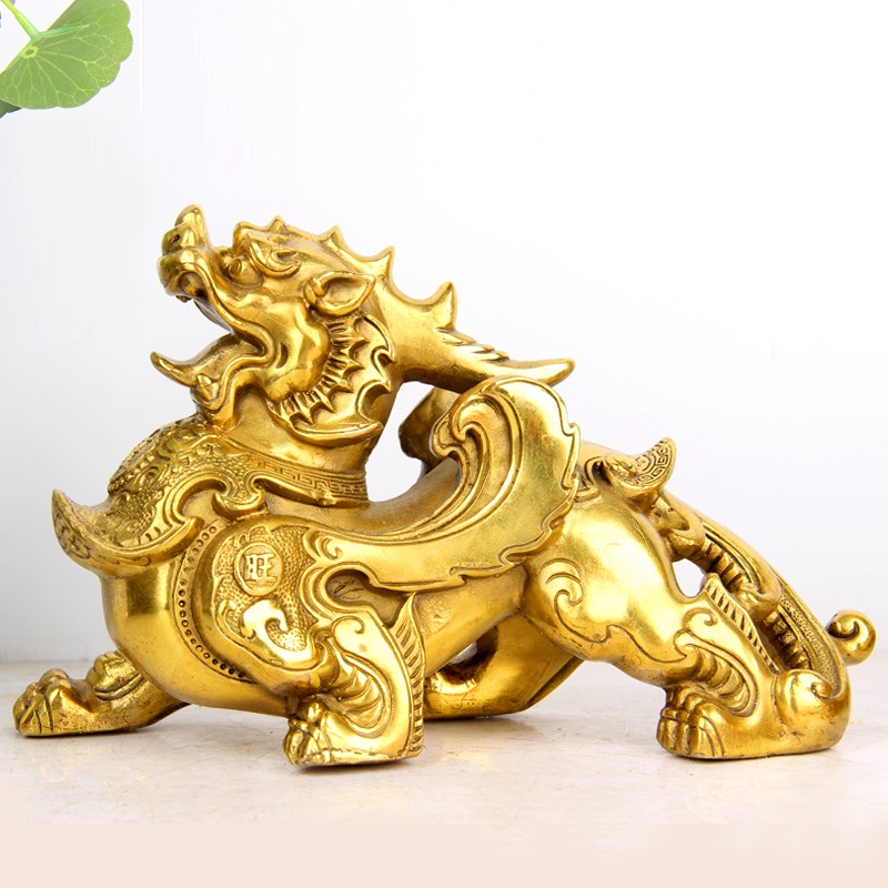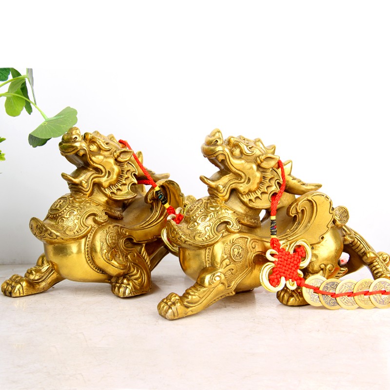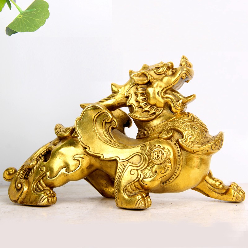 黄色铜铠甲貔貅摆件 铜貔貅一对客厅店铺家居装饰办公室