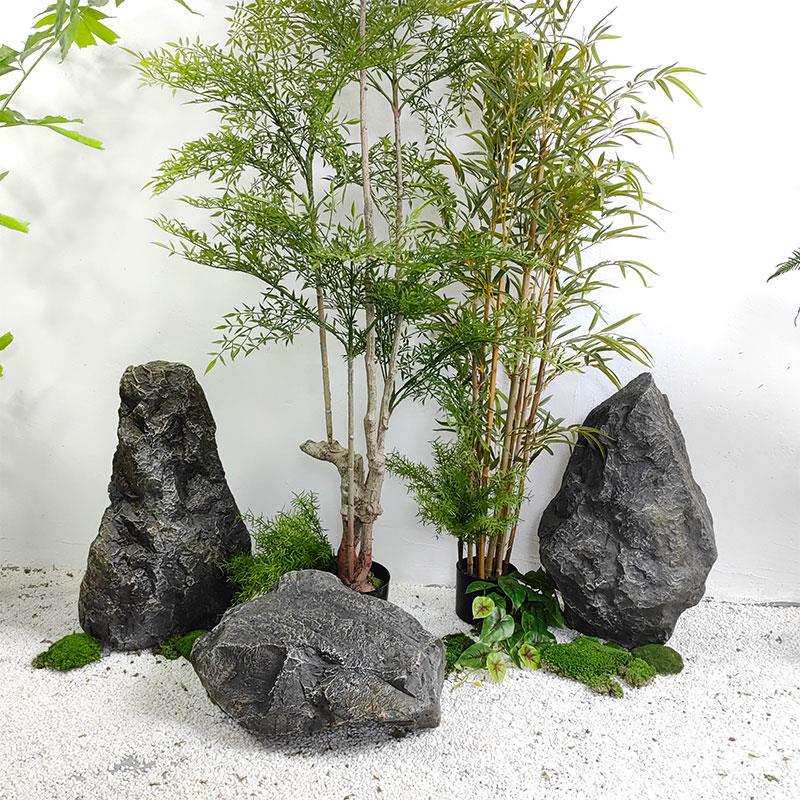 仿真石黑山石造景玻璃钢空心石假山庭院草坪装饰景观造型软装布置