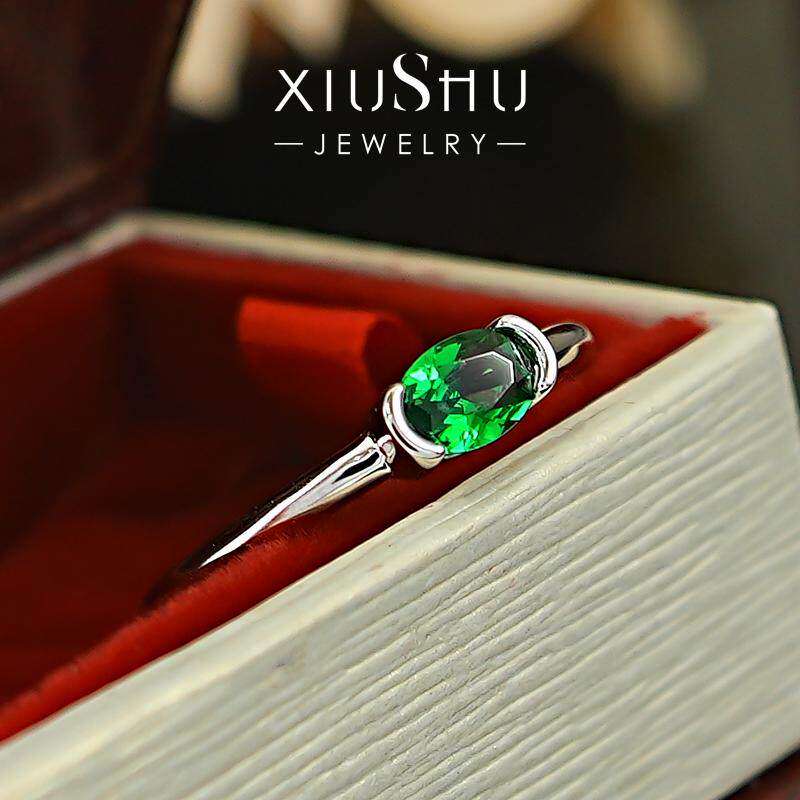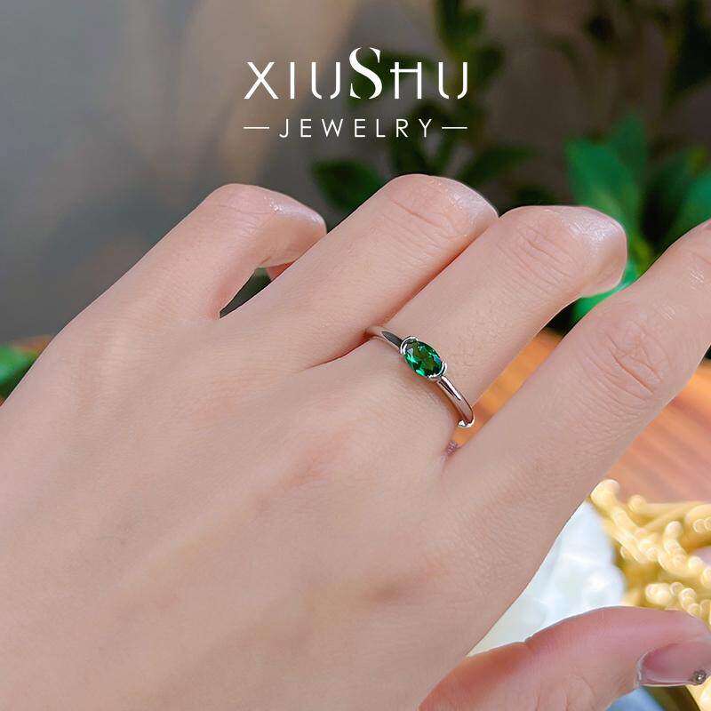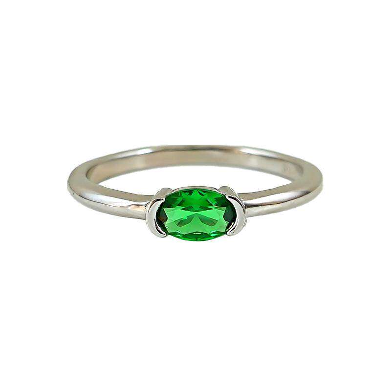 绿意盎然!极简风素圈光臂火彩祖母绿色戒指S925纯银高碳钻日常