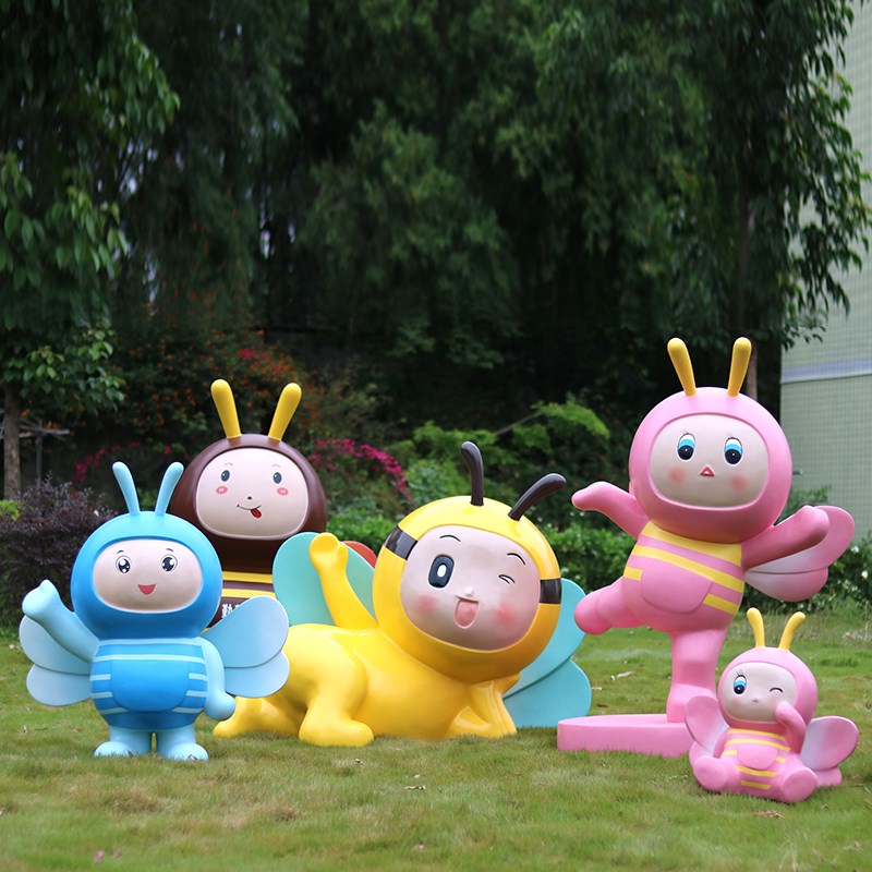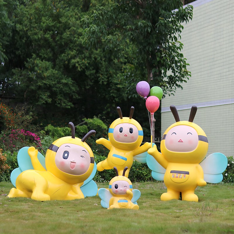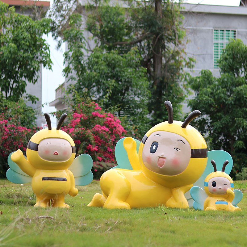 卡通蜜蜂雕塑幼儿园户外园林景观装饰品景区网红打卡处玻璃钢摆件