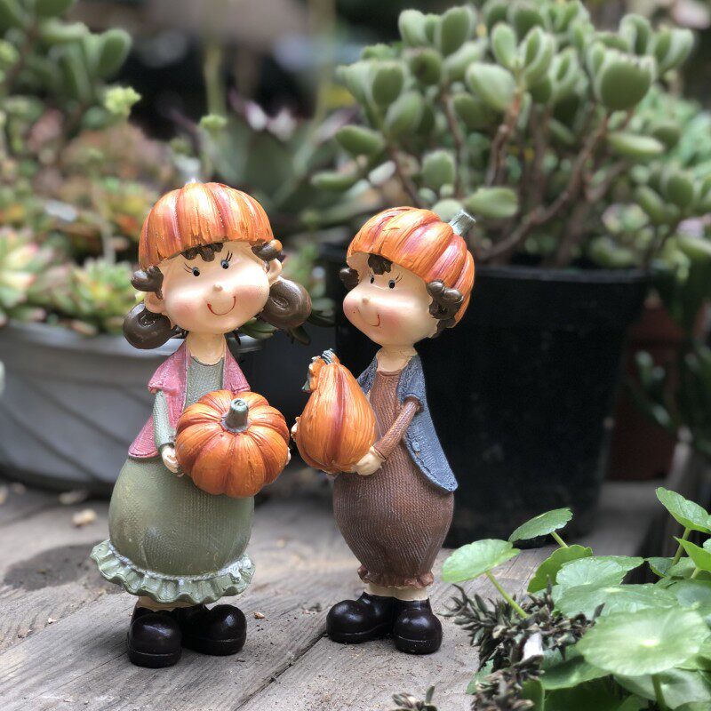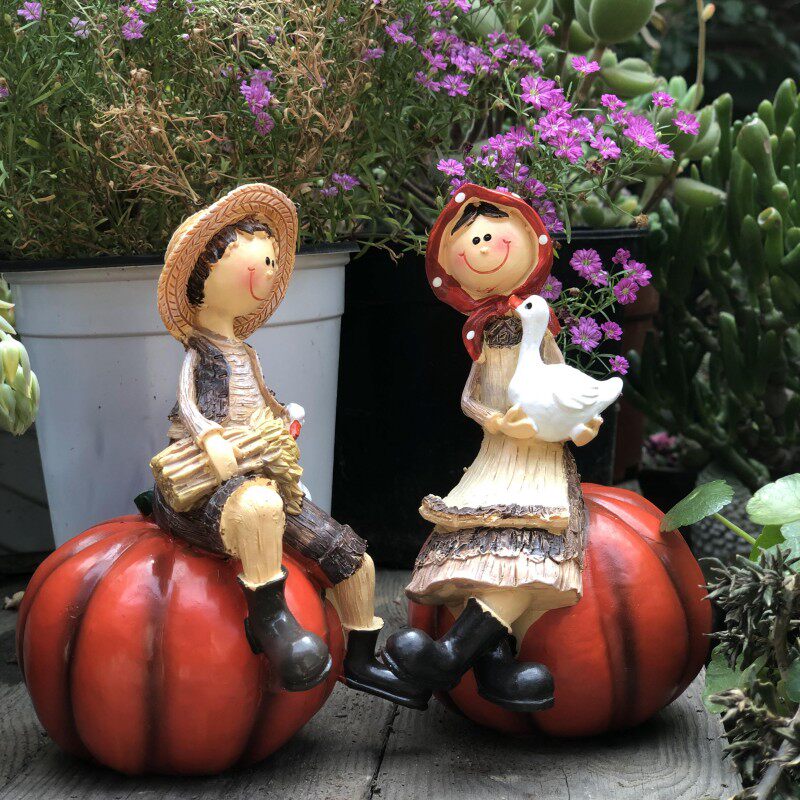 美式乡村风树脂南瓜女孩摆件庭院花园仿真人物园艺装饰品造景摆设