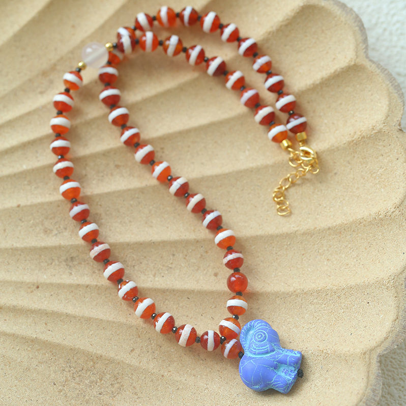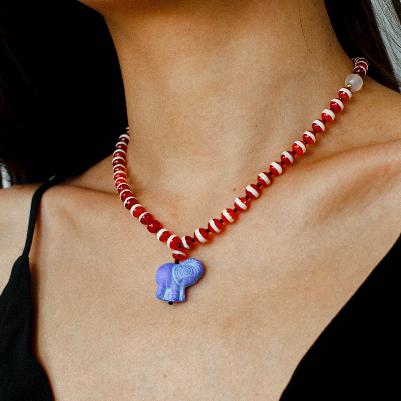 TU家原创设计玛瑙串珠琉璃大象吊坠项链小众个性叠搭锁骨链颈链女