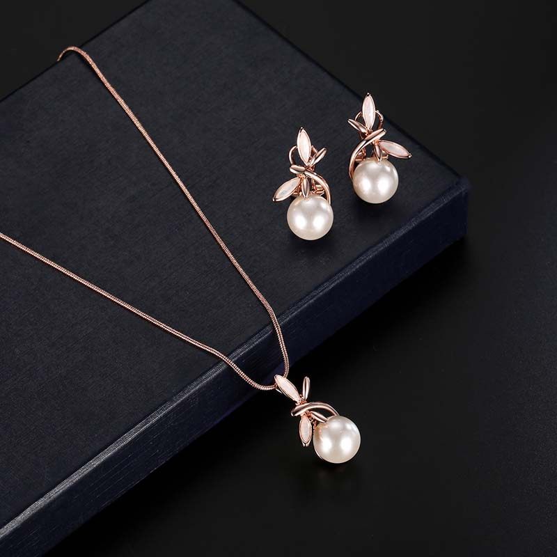 欧美时尚流行 珍珠项链耳环套装简约甜美百搭晚宴新娘礼服女配饰