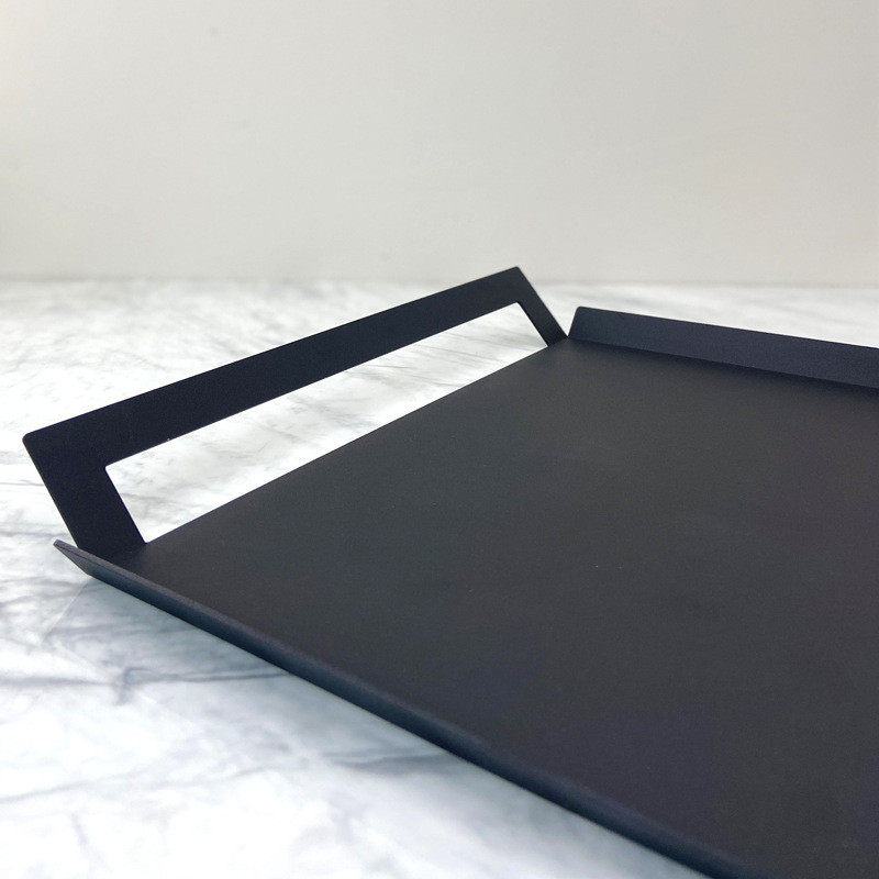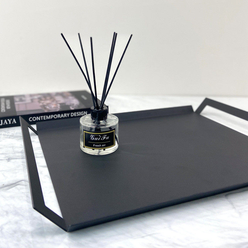 热销简约现代黑色金属托盘几何方形磨砂样板房桌面收纳装饰摆件