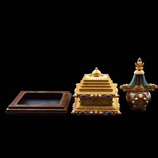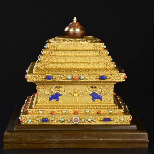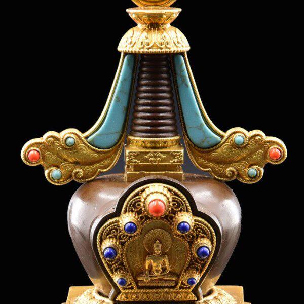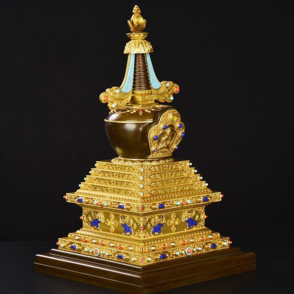 藏密 供具供品精美纯铜菩提塔 镶嵌宝石舍利塔佛塔12寸