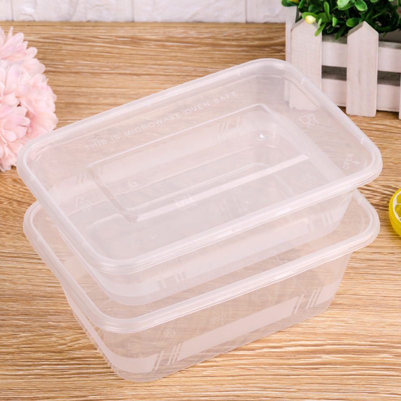 1000ml长方形一次性餐盒塑料外卖打包盒加厚透明快餐便当饭盒带盖
