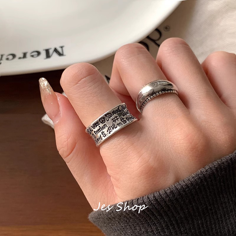 Jes Shop复古做旧重工戒指英文字母时尚小众设计开口高级感食指戒