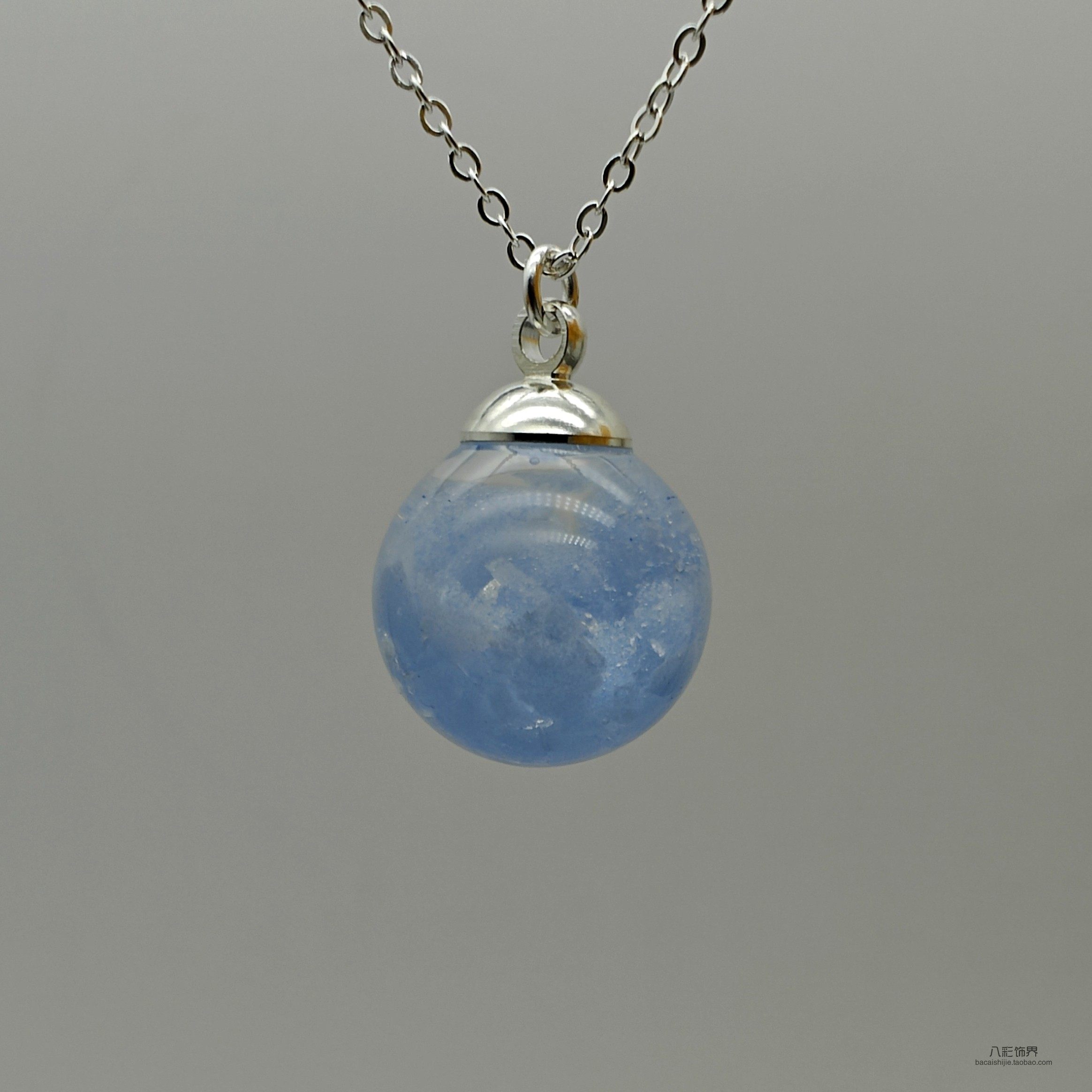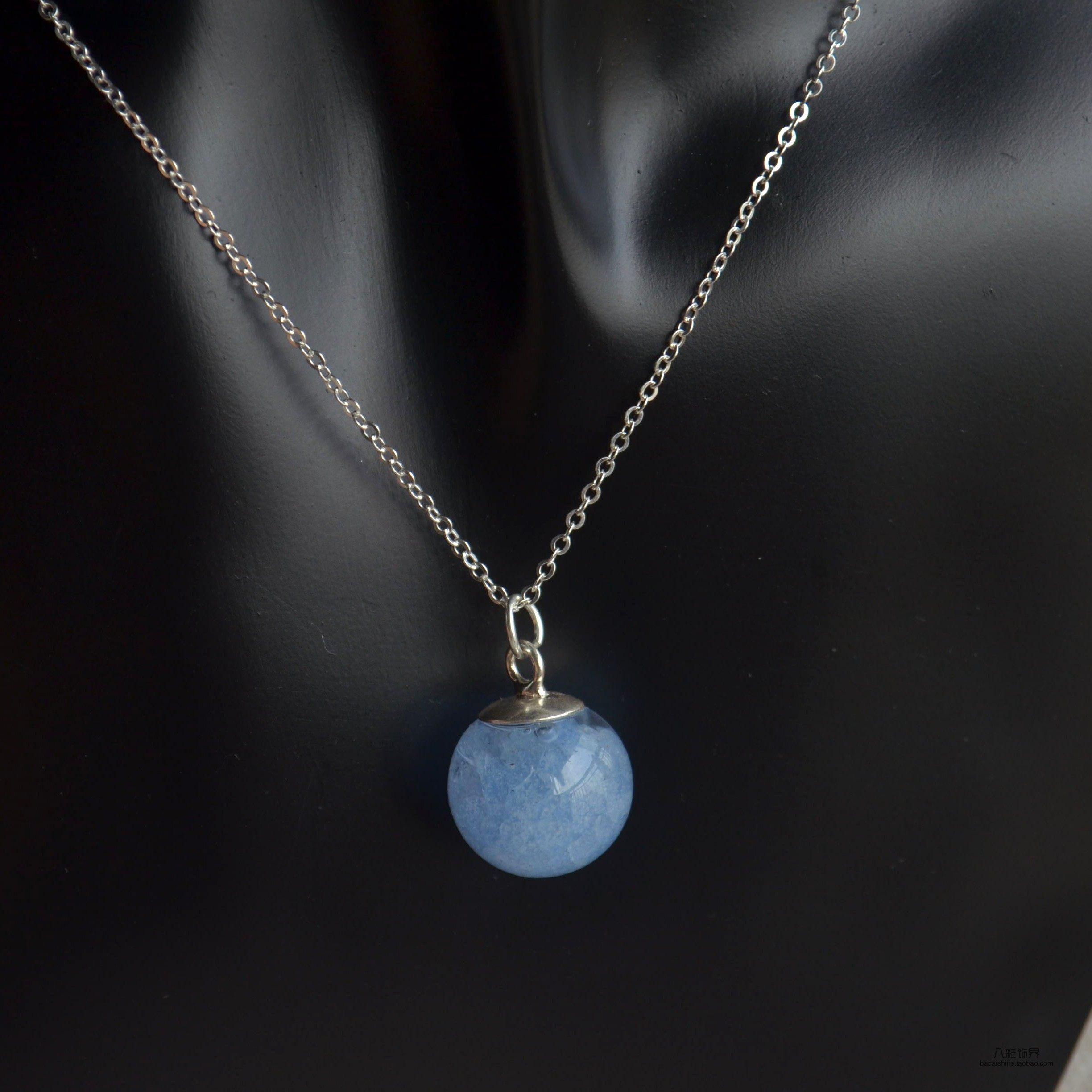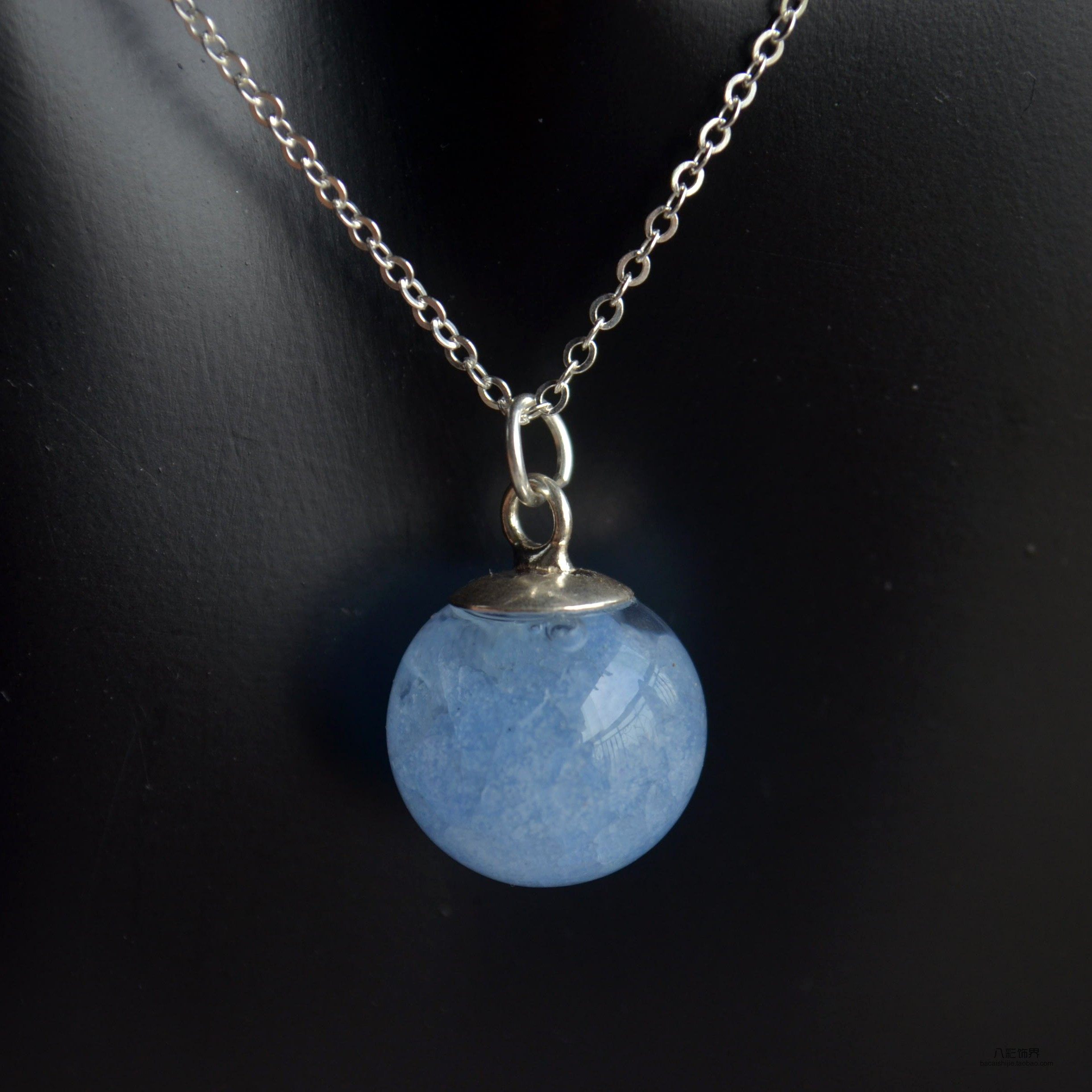 原创设计南极之恋蓝色夜光玻璃球925纯银项链女简约时尚气质百搭