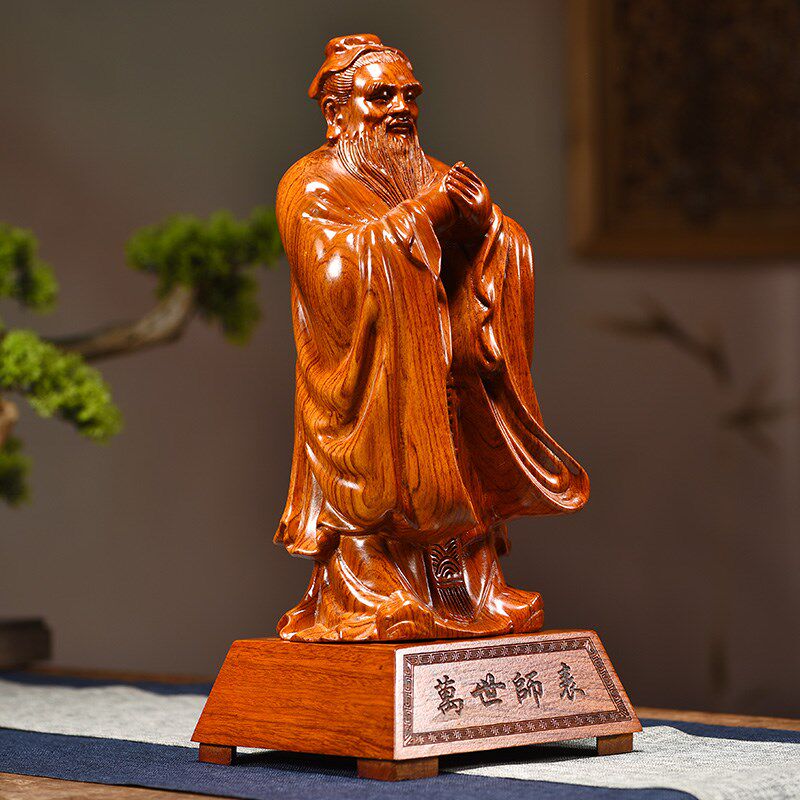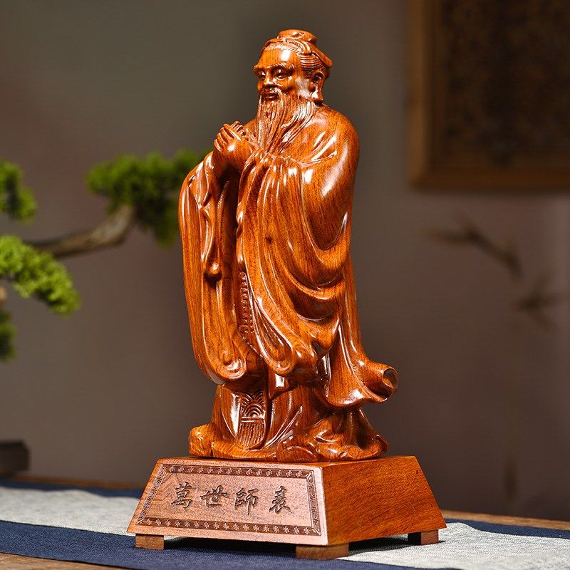 花梨实木孔子像摆件实木质孔夫子雕像客厅装饰书房摆设教师节礼品