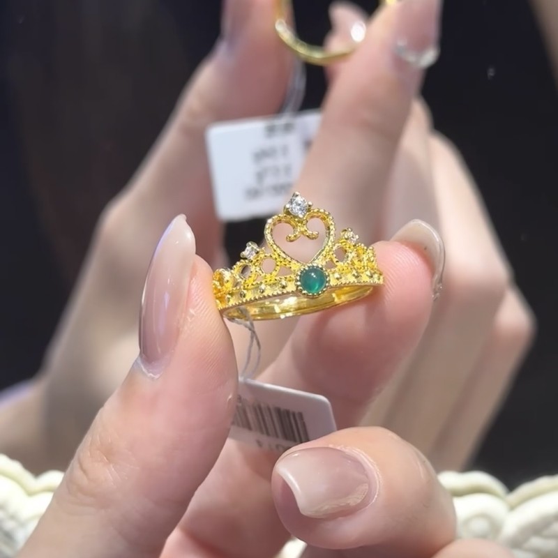 新款时尚百搭天鹅皇冠爱心戒指黄色开口女复古轻奢饰品